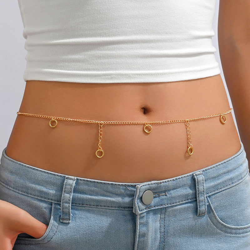 欧美创意个性长款几何圆形腰链女士 ins简约精致身体链饰品
