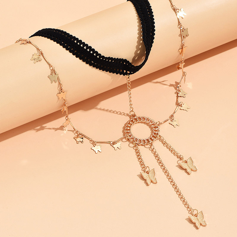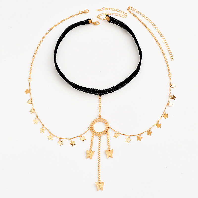 潮流夸张多层流苏蝴蝶弹力腿链女士 创意个性蕾丝身体链
