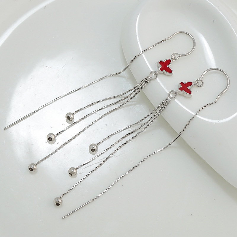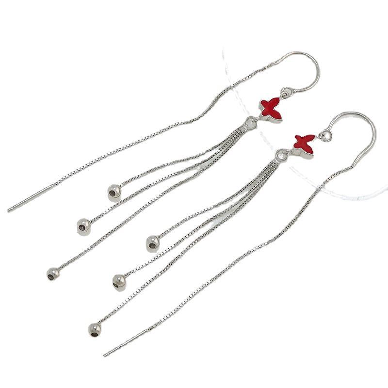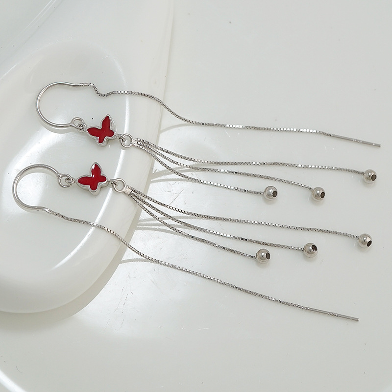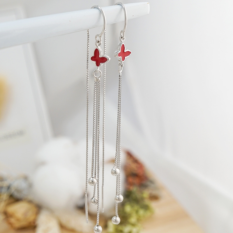 S925纯银耳线韩国气质蝴蝶耳环女长款流苏显瘦脸百搭时尚耳饰