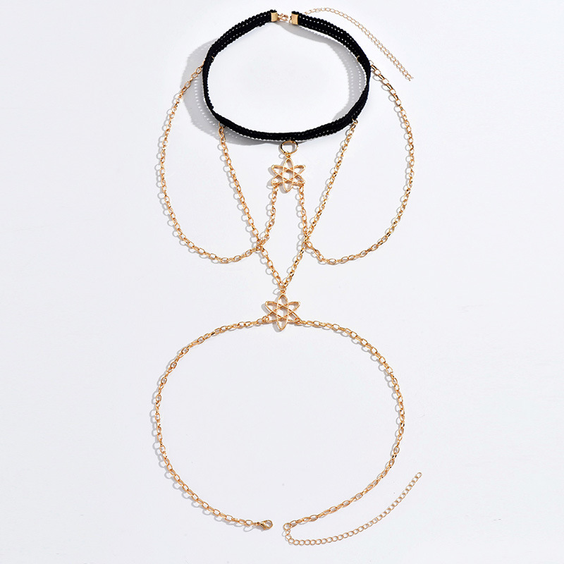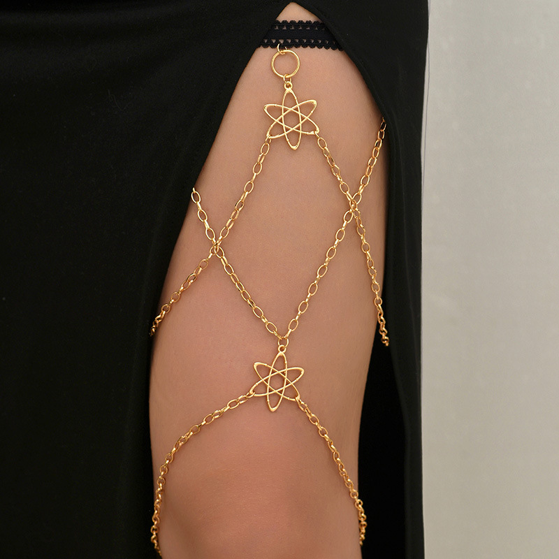 创意性感多层链条六角腿链女士 ins海滩潮流几何身体链饰品