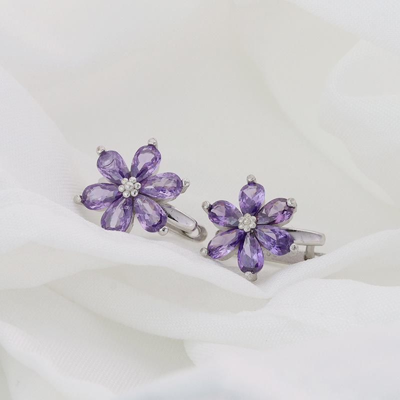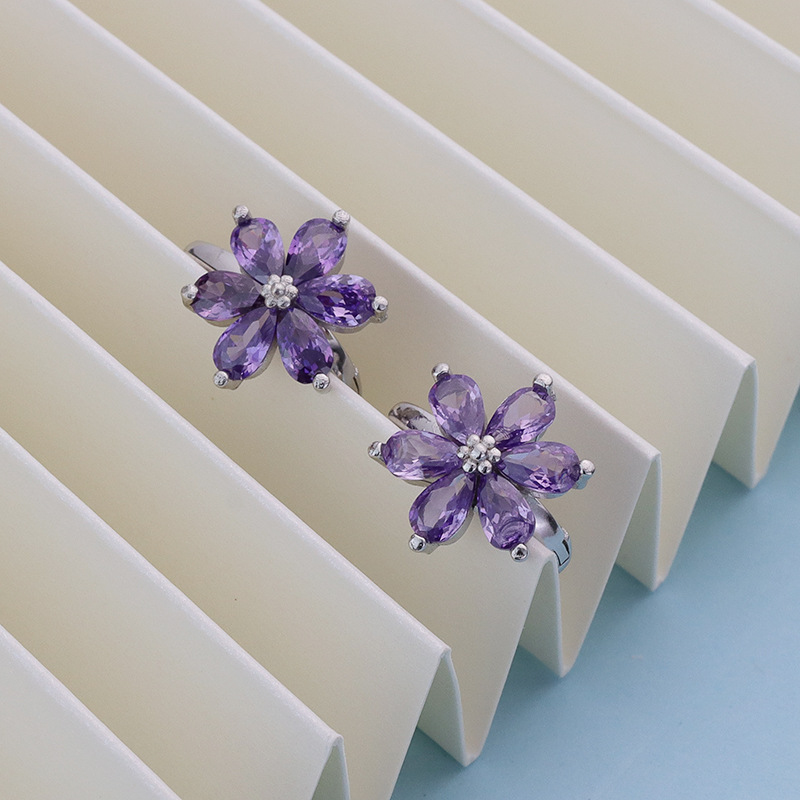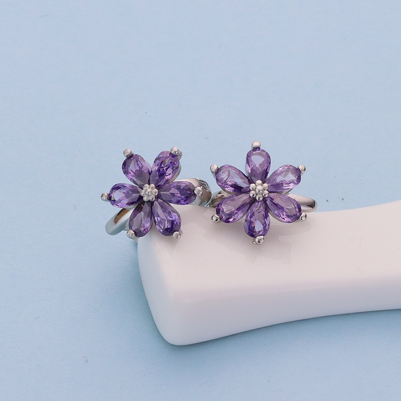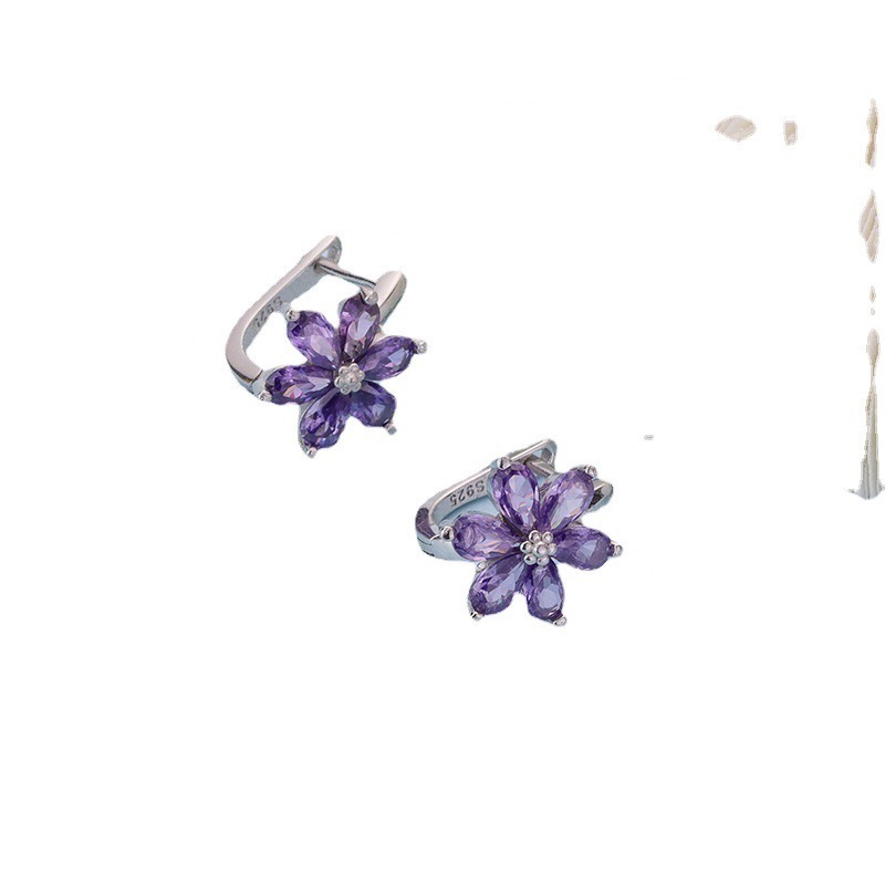 S925纯银紫色水晶小花耳环 韩版时尚镶钻小巧耳钉女轻奢气质耳饰