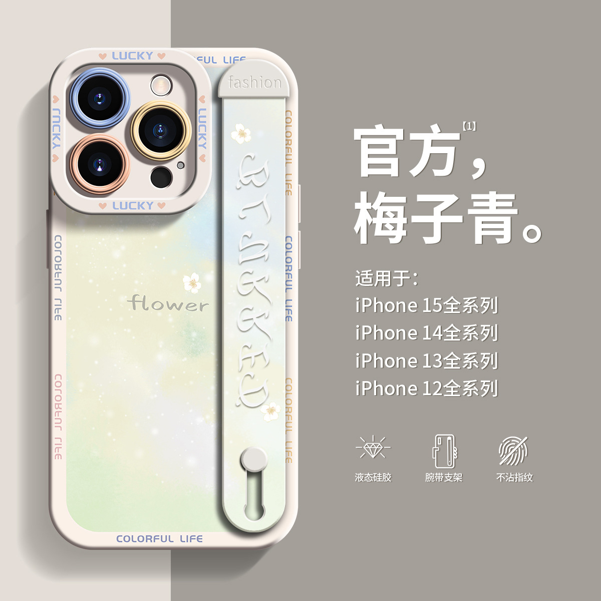 适用于苹果15Promax手机壳进口硅胶腕带支架亲肤全包创意iPhone14
