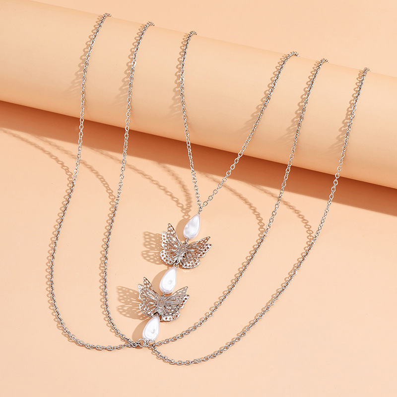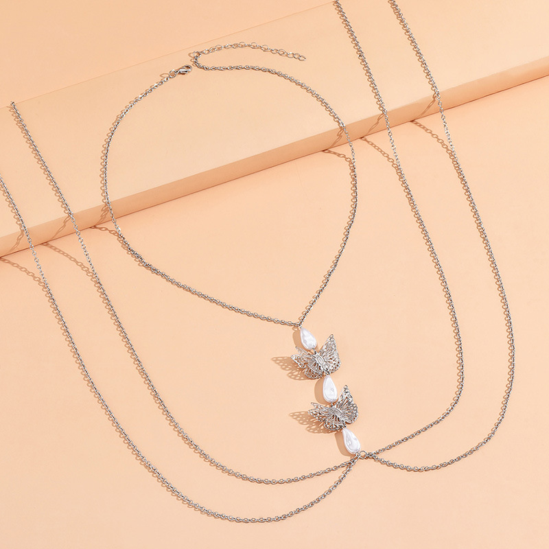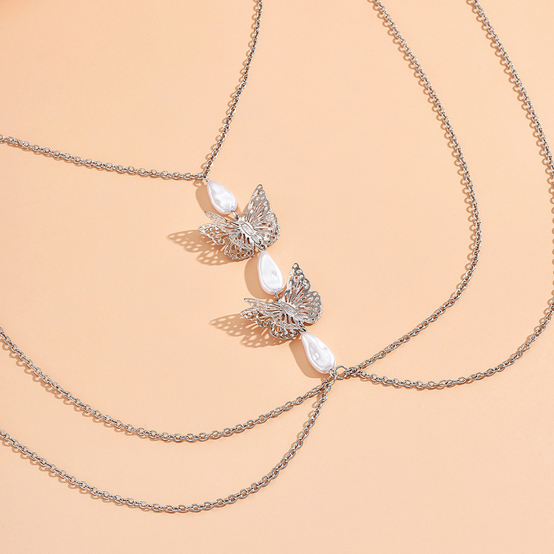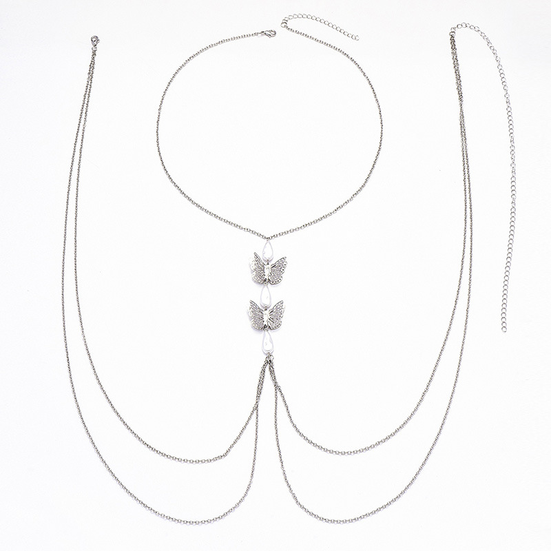 欧美潮流创意长款链条多层珍珠蝴蝶身体链 ins网红沙滩个性饰品