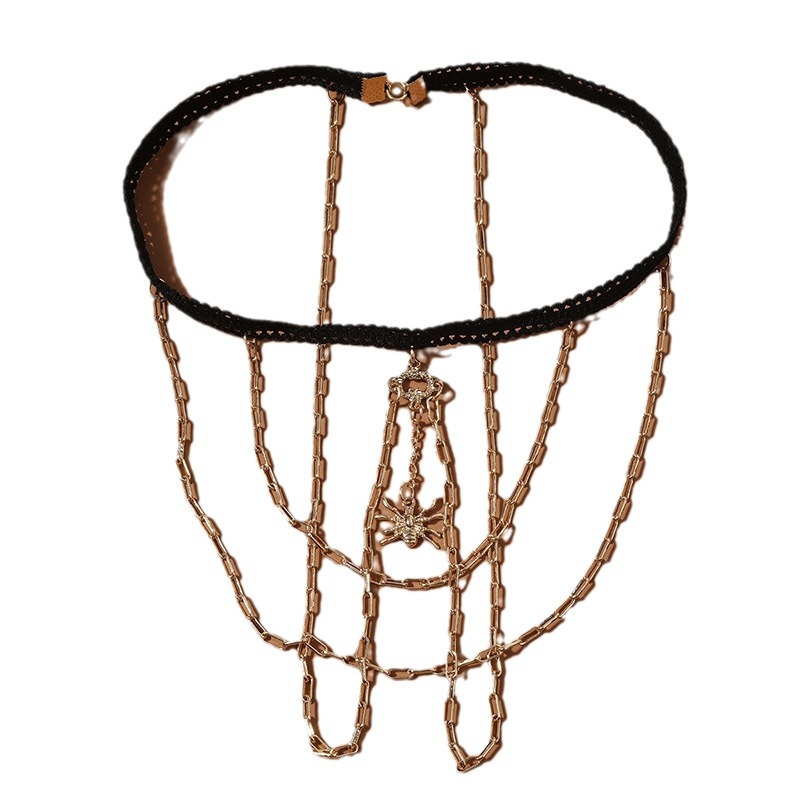 欧美潮流多层链条蜘蛛弹力大腿链女 ins网红创意金属身体链