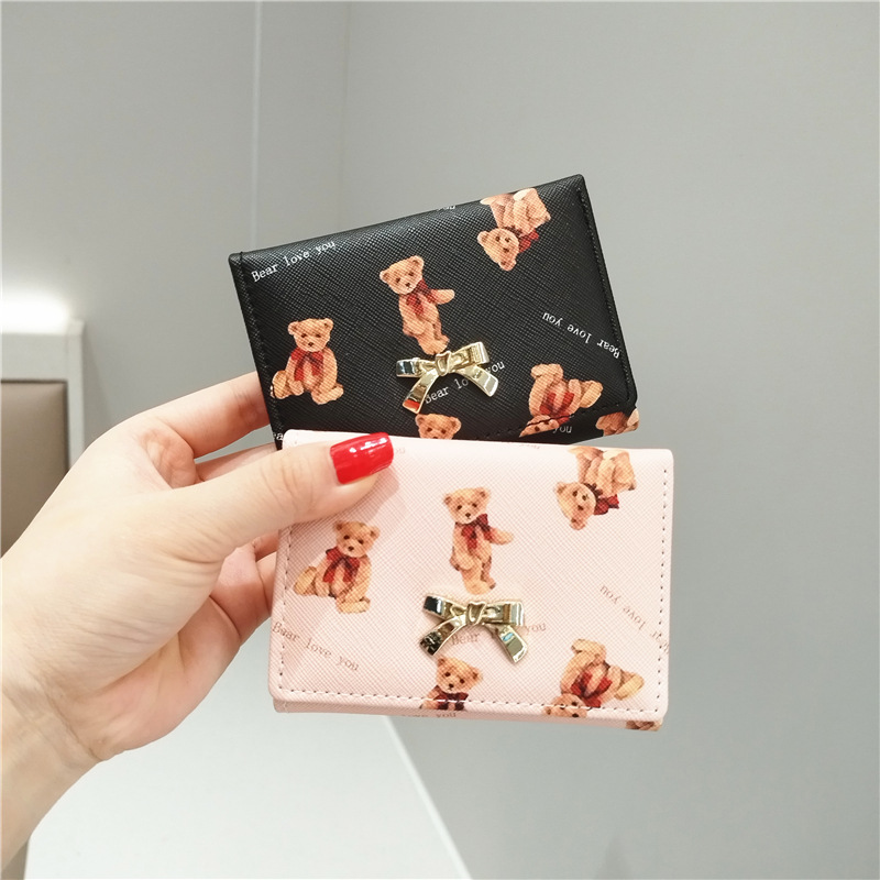 新款卡通可爱小熊款印花蝴蝶结三折小巧迷你学生钱包钱夹