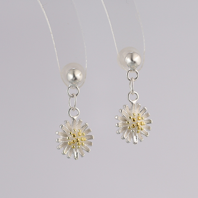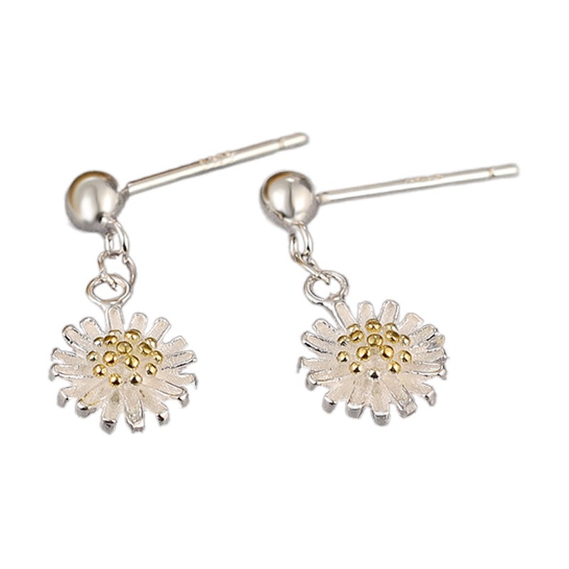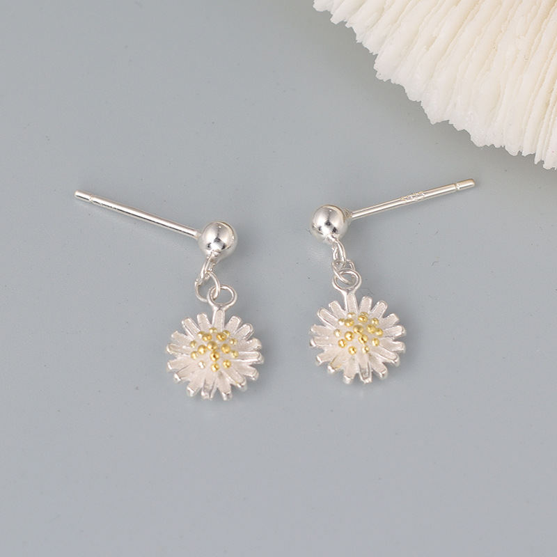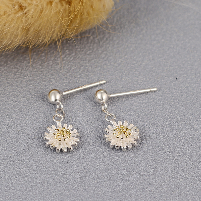 s925纯银小香风耳钉女 小雏菊简约小清新耳环花朵耳坠耳饰品