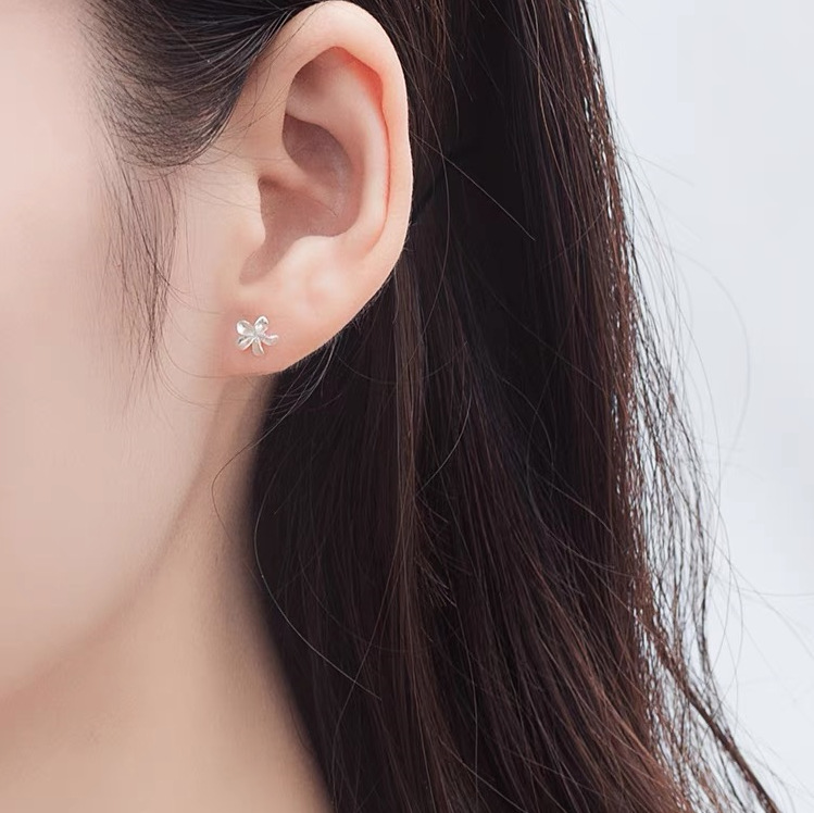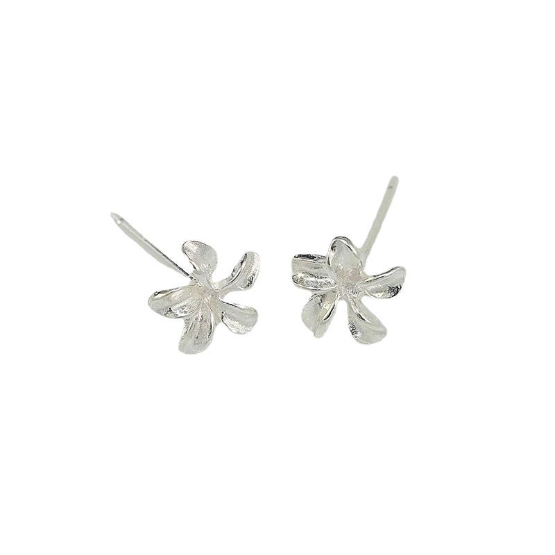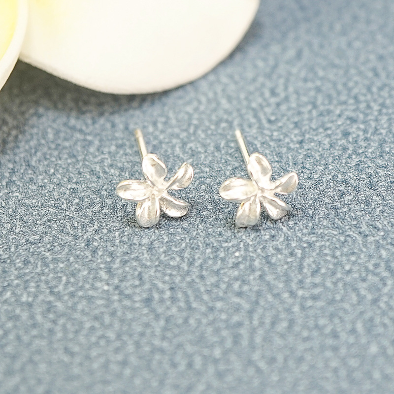 S999纯银花朵耳钉学生森系简约小清新鸡蛋花耳饰养耳洞