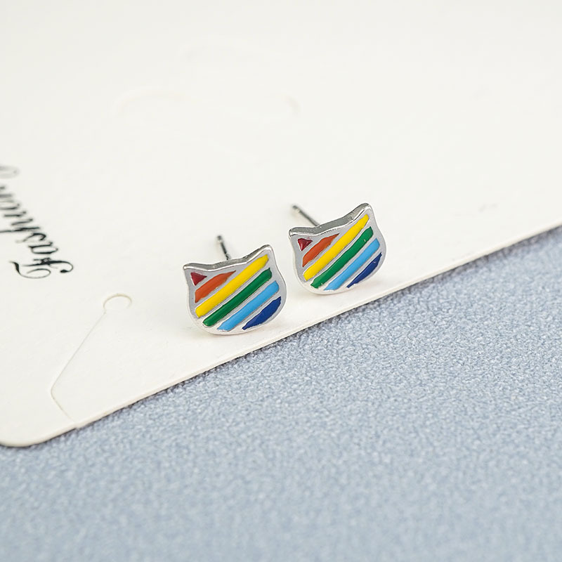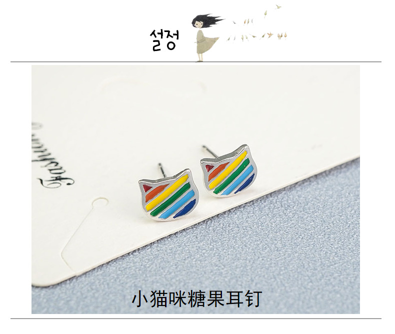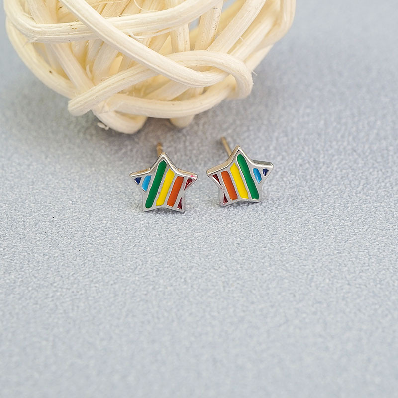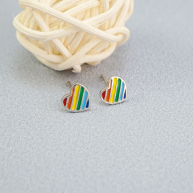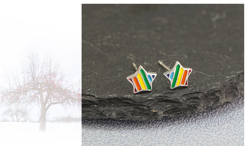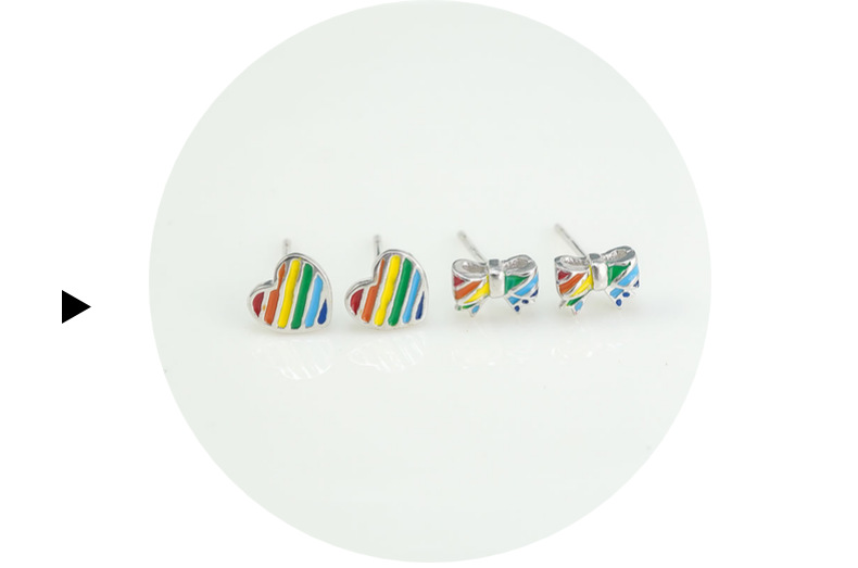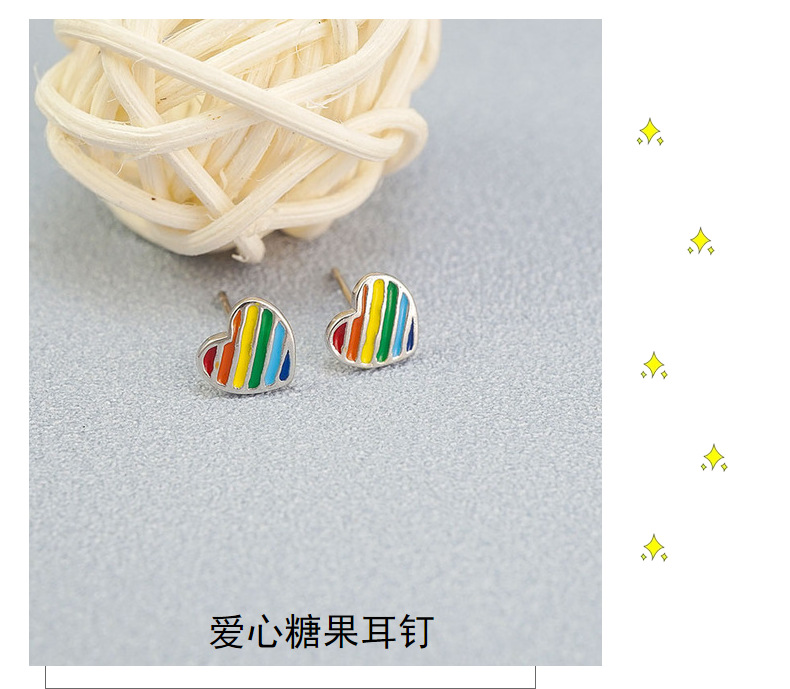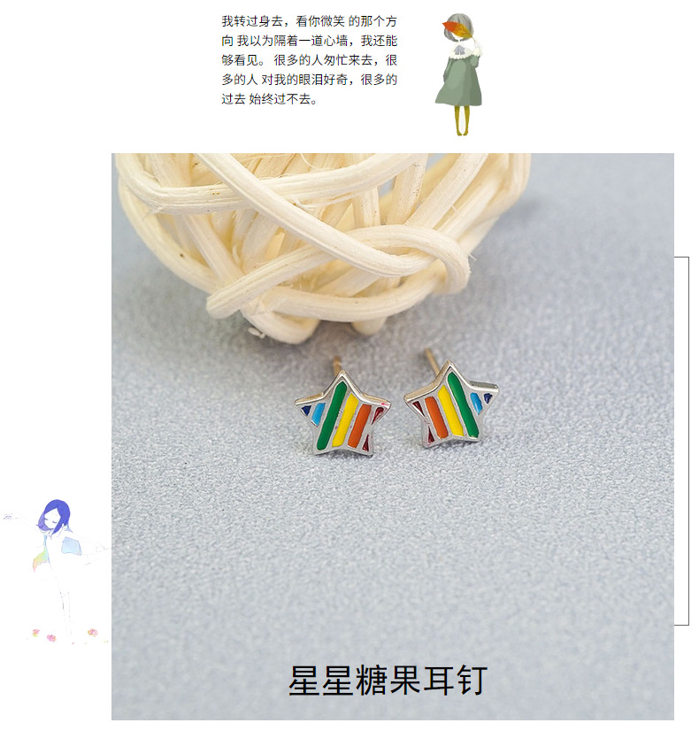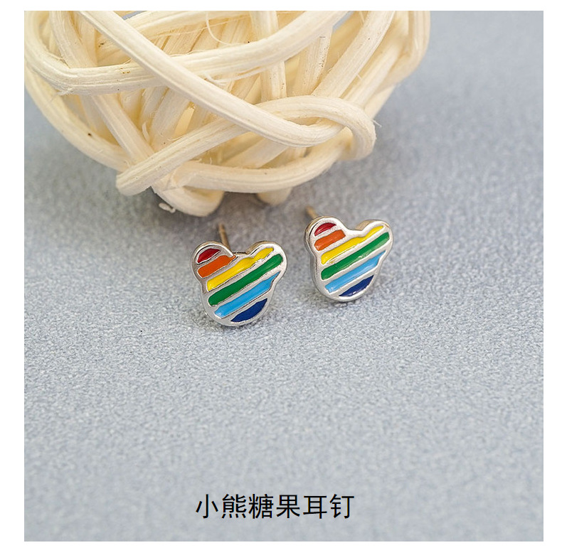 s999纯银简约森系彩虹爱心耳钉女韩版蝴蝶结甜美小清新星星耳饰