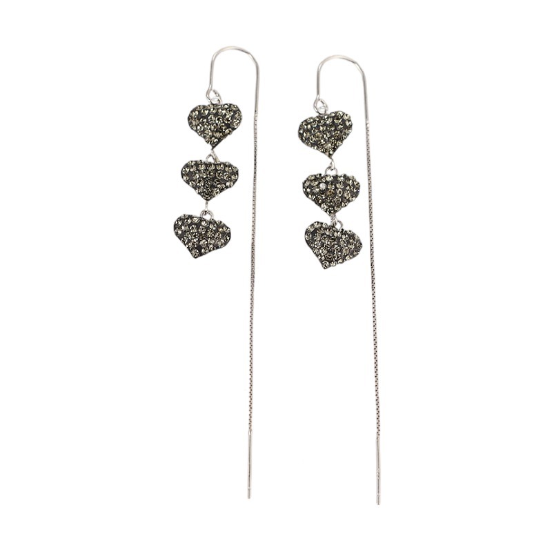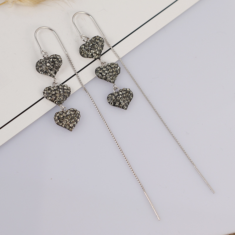 s925纯银韩版简约心形耳环女气质长款流苏几何耳线显脸瘦