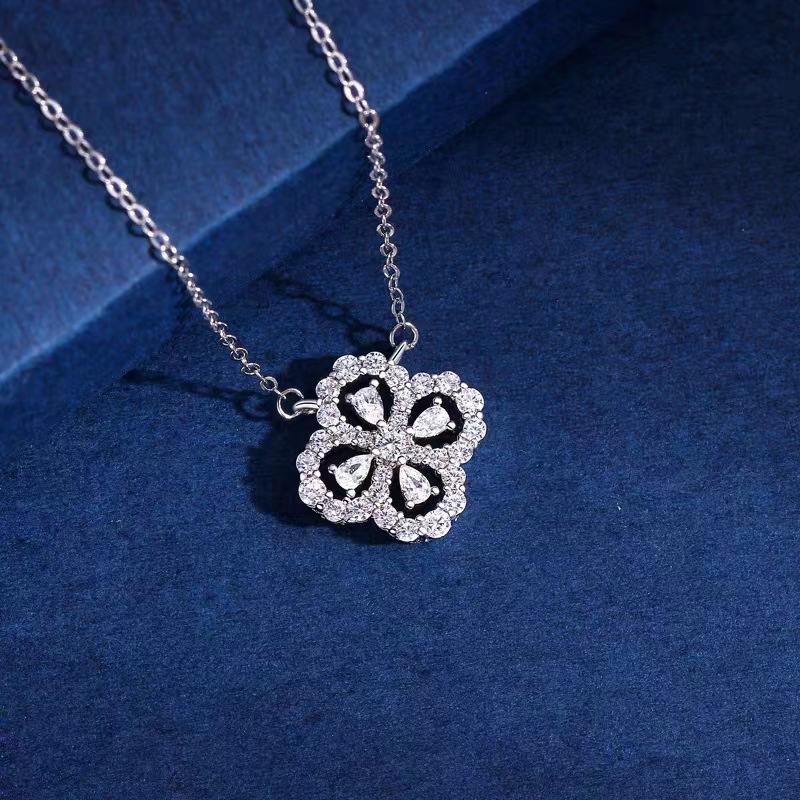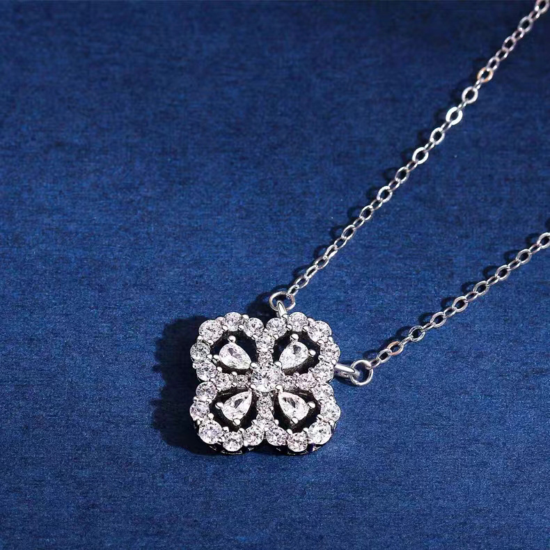 S925纯银新款四叶草项链女韩版轻奢时尚百搭银项链高级感饰品