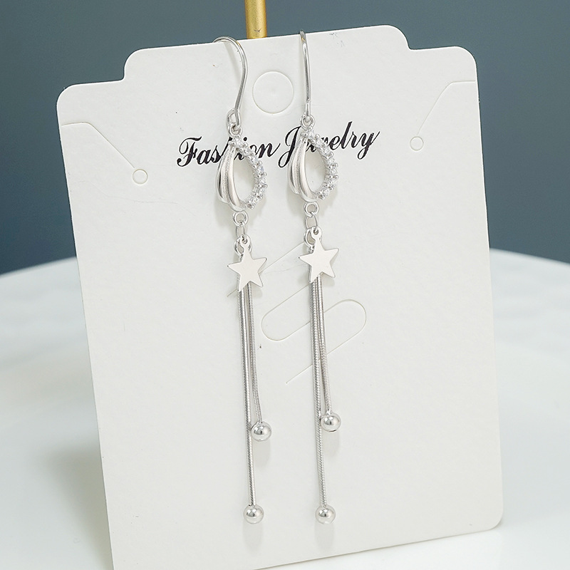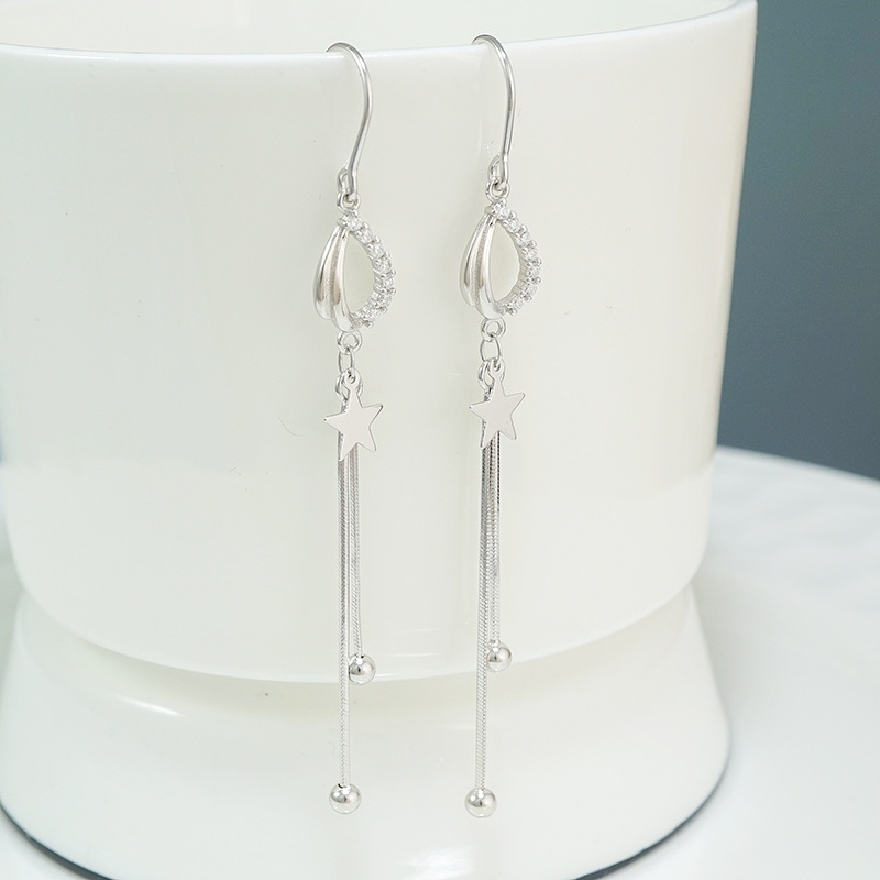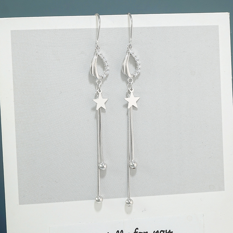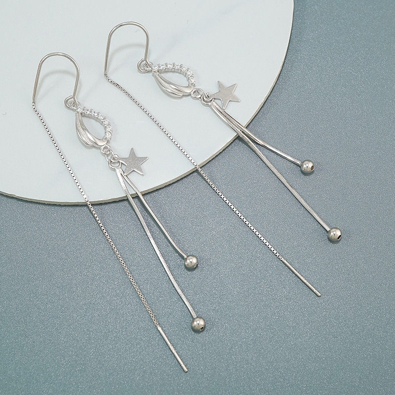 s925纯银 耳环圆脸显瘦女 气质长款星星流苏个性时尚耳饰