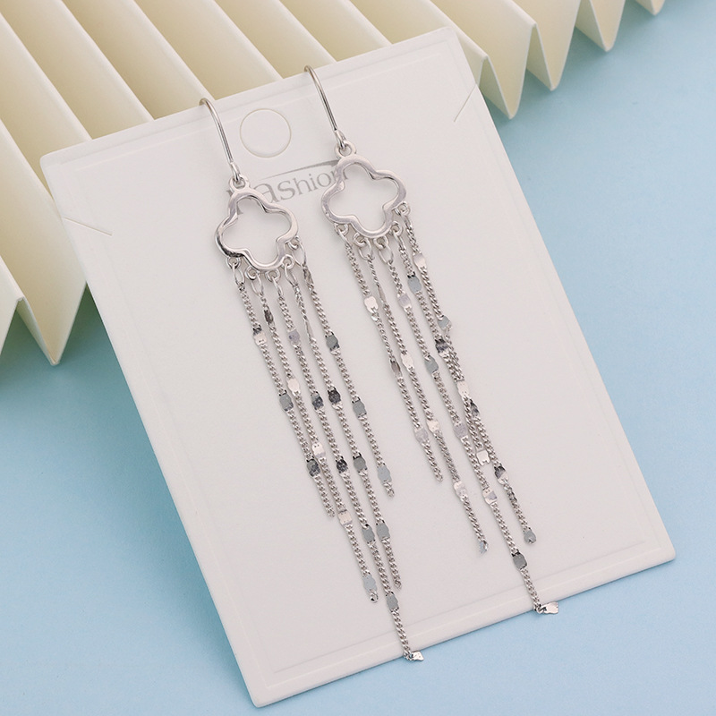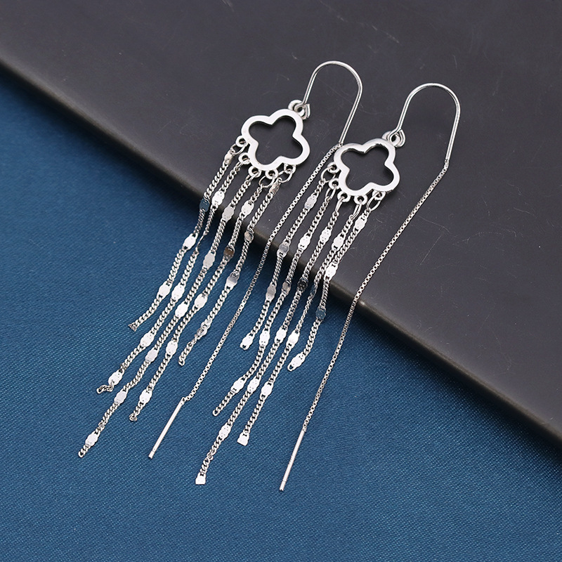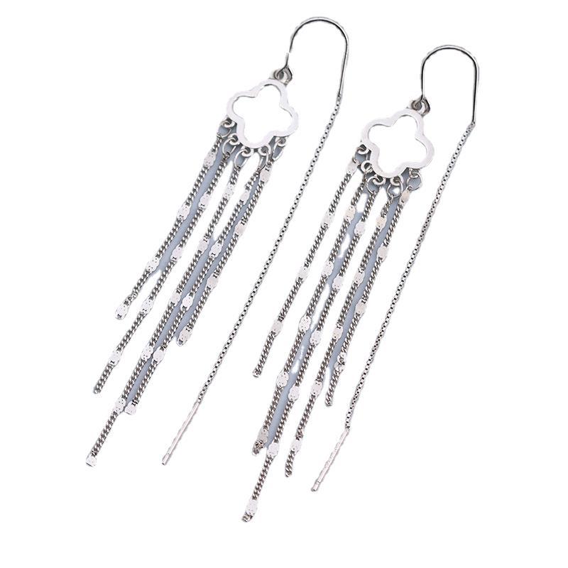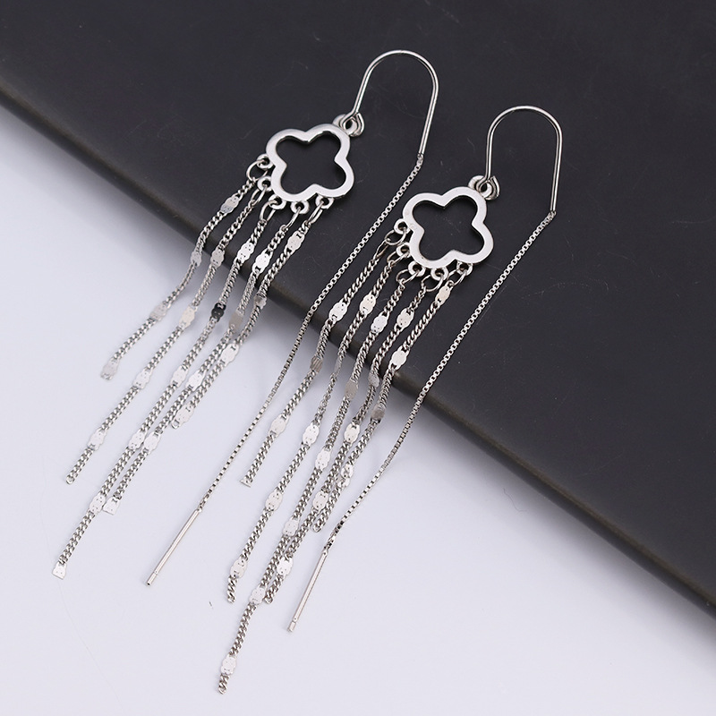 S925纯银耳线女韩国气质四叶草耳环长款流苏轻奢风网红潮时尚耳饰