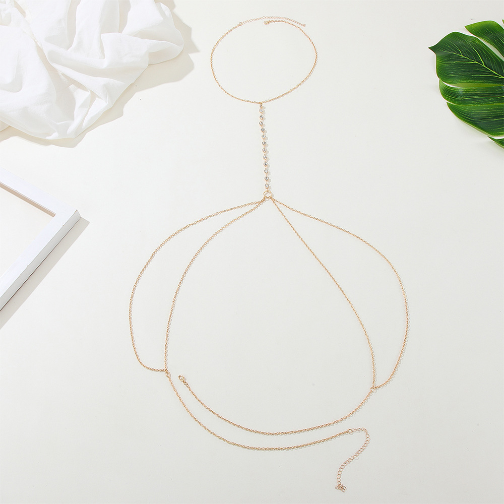 夏季镶钻简约性感身体链潮流沙滩风双层腰链项链一体饰品
