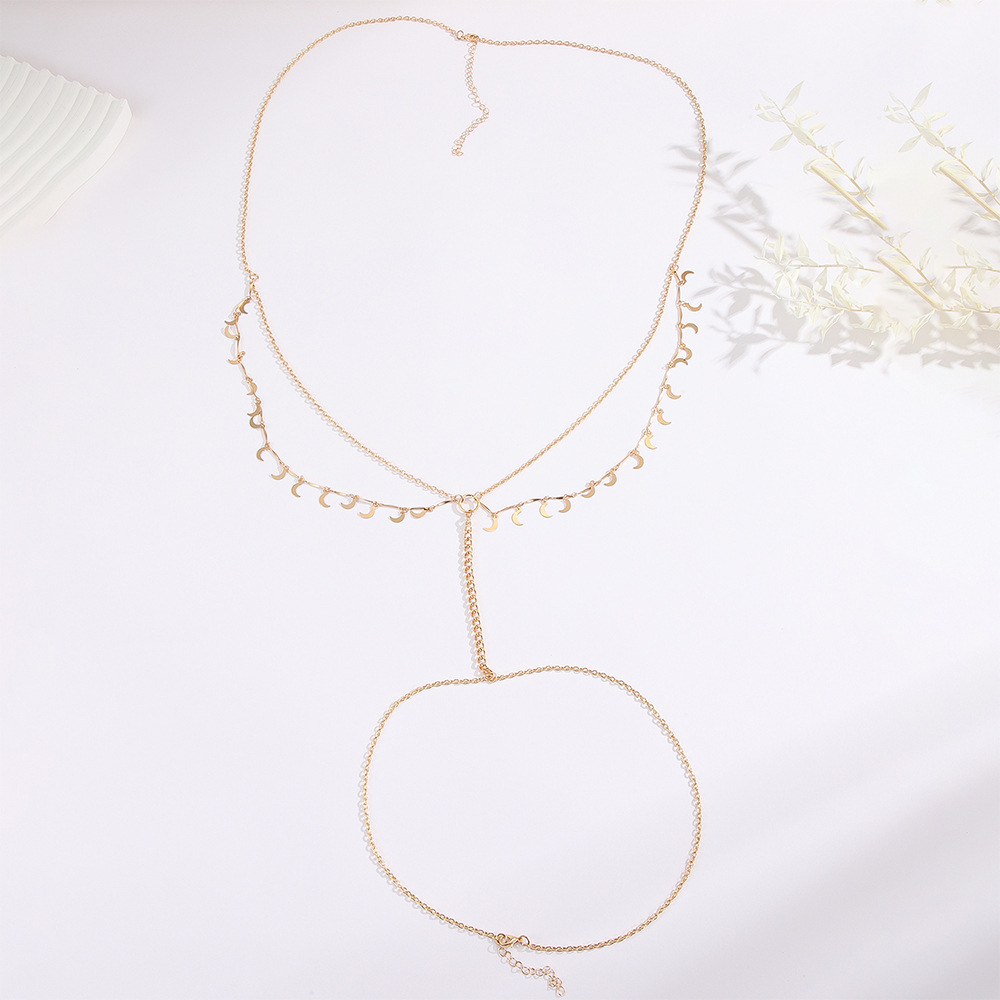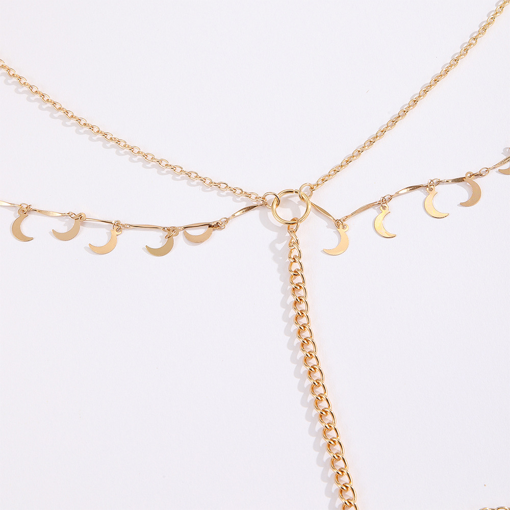 月亮串链热款身体链性感时尚清凉夏季双层胸链项链一体饰品