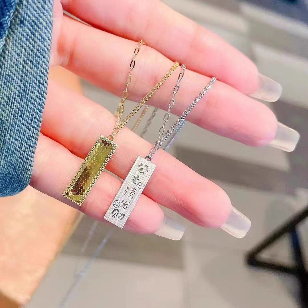 s990纯银公主请发财项链女小众新中式吊坠上上签碎冰冰新款锁骨链