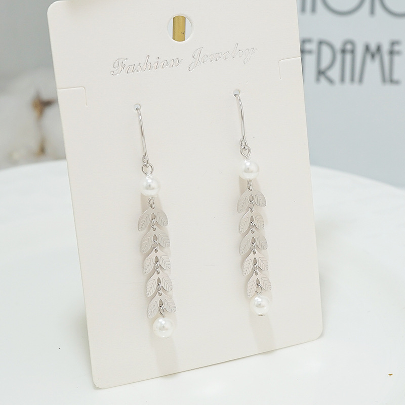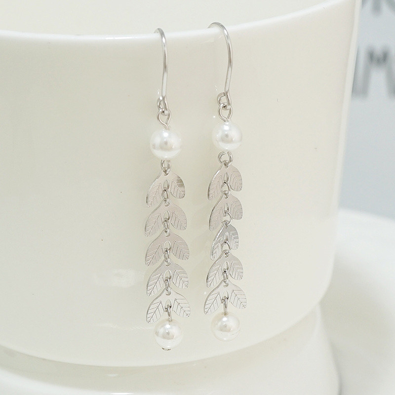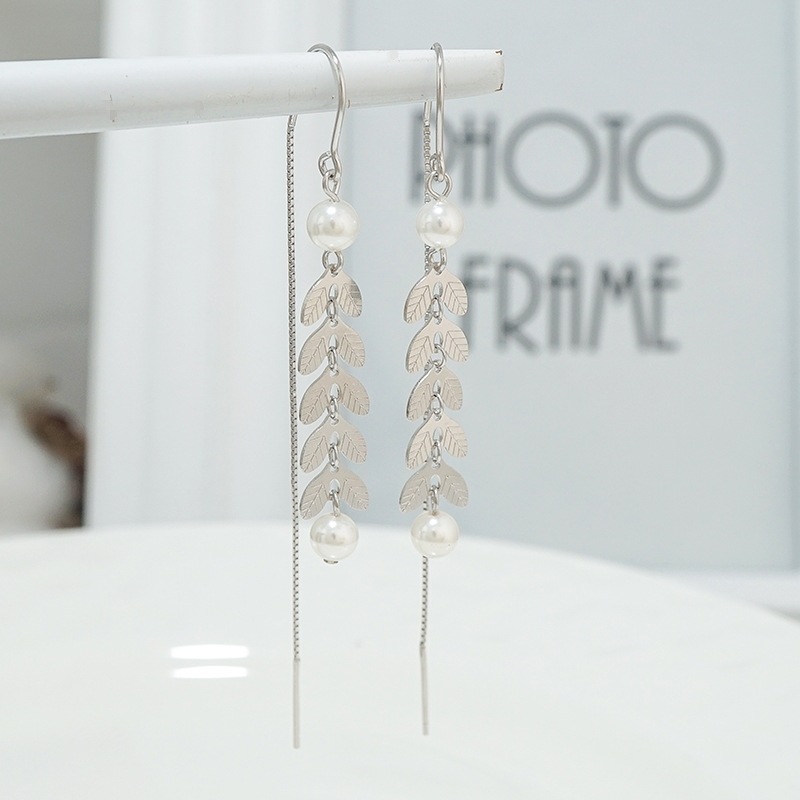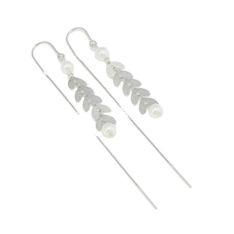 S925纯银韩版气质含羞草长款流苏耳线麦穗珍珠耳环