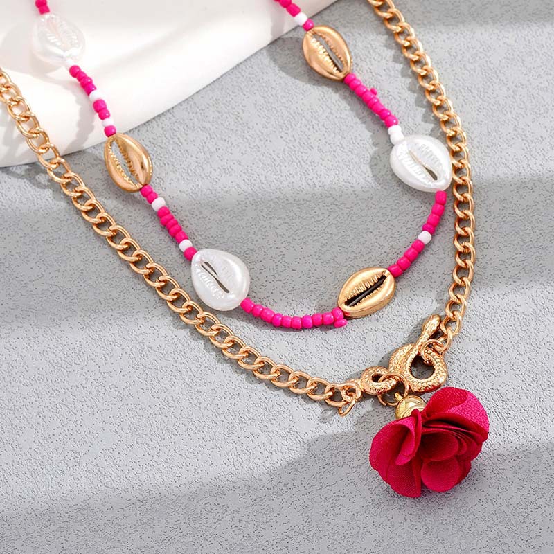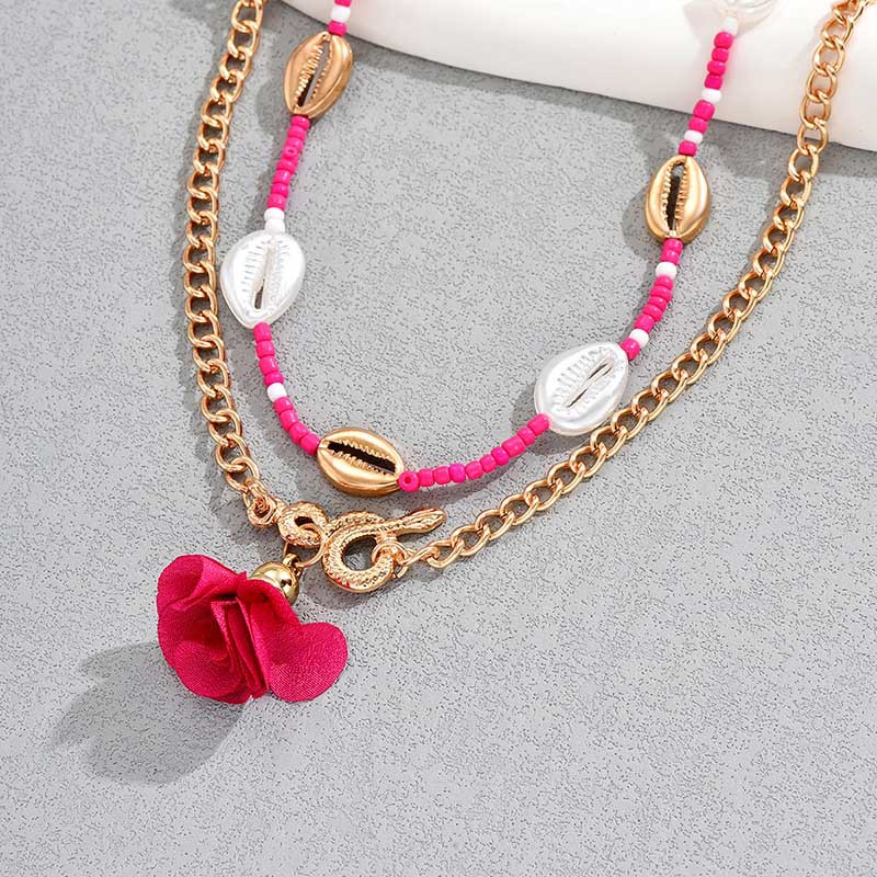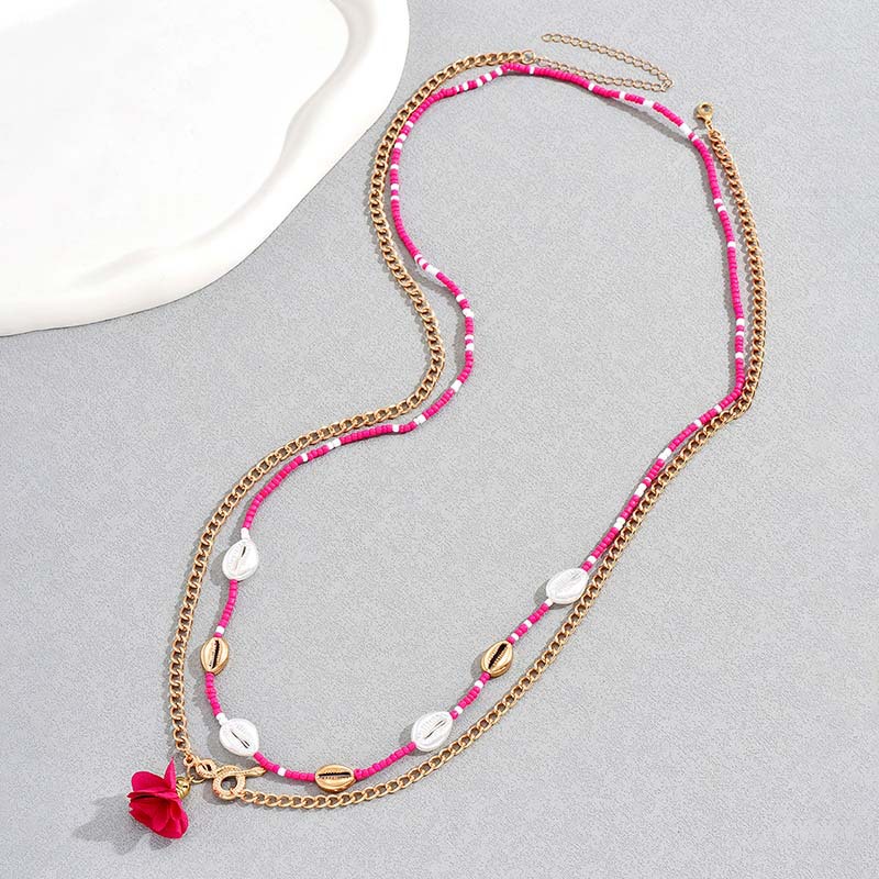 欧美风波西米亚风简约多层米珠珍珠花朵腰链女 ins创意个性贝壳身体链