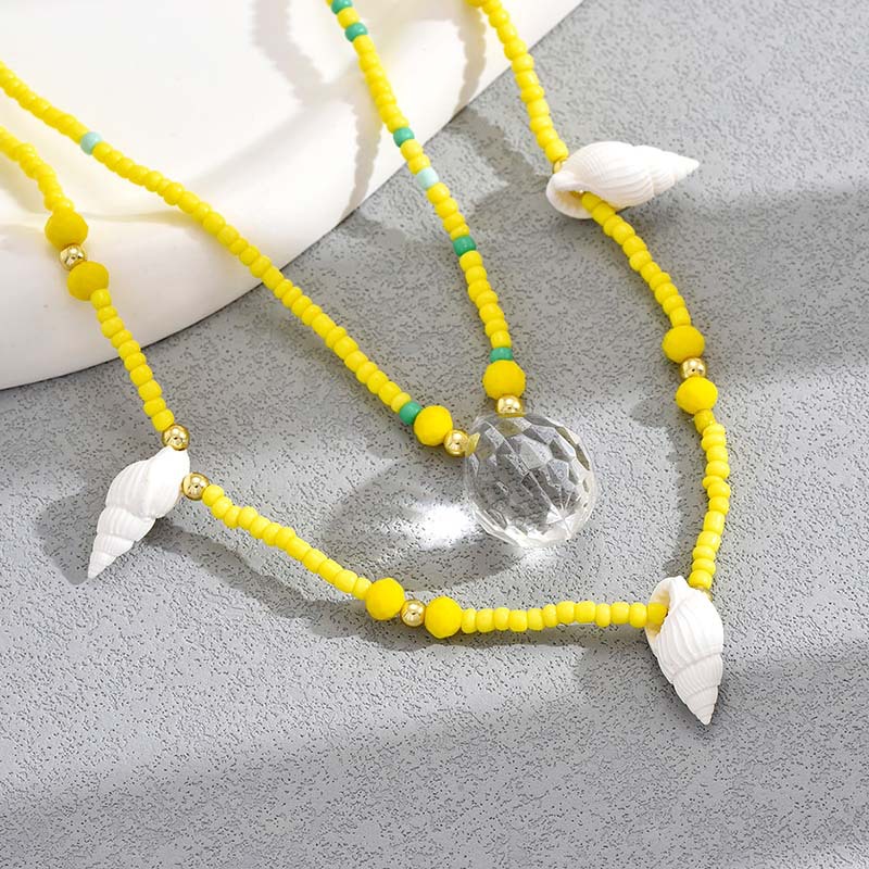 欧美风创意多层弹力米珠贝壳腰链女 个性度假树脂身体链饰品
