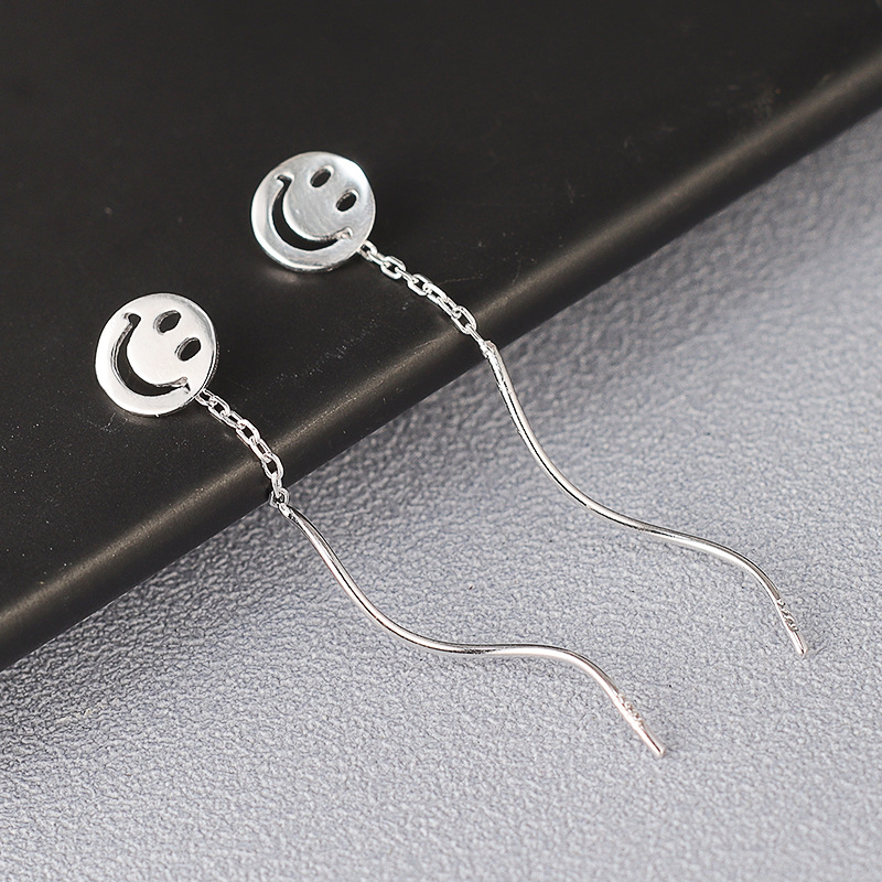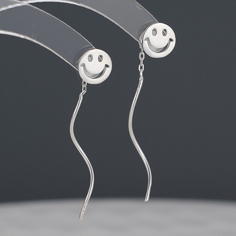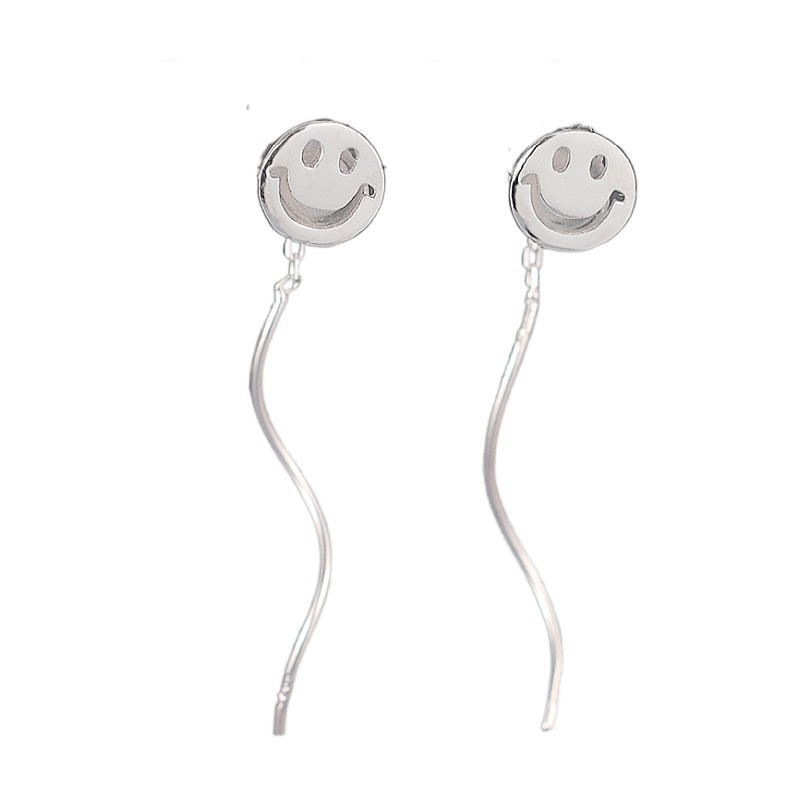 s925纯银韩版气质笑脸耳线女韩版超仙百搭微笑波浪耳环