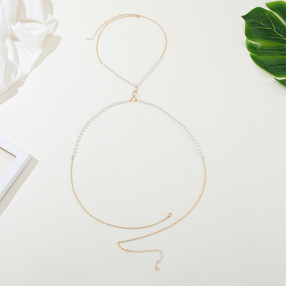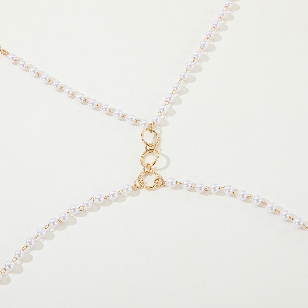 原创时尚性感身体链珍珠串联简约大气清凉潮流项链一体链