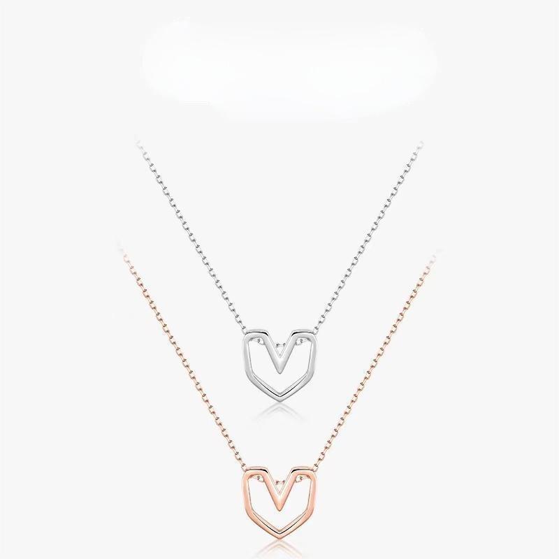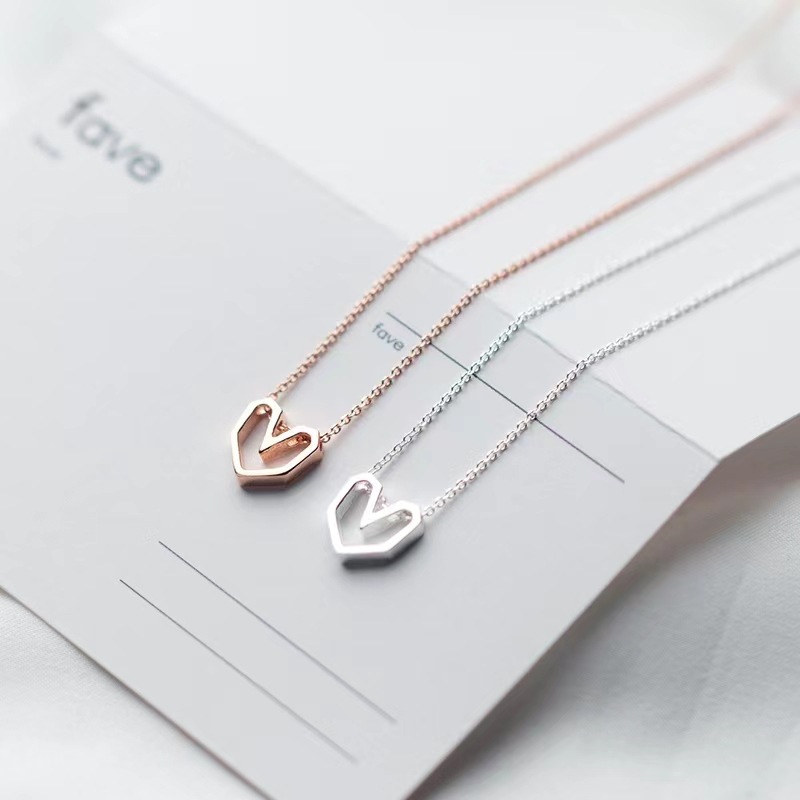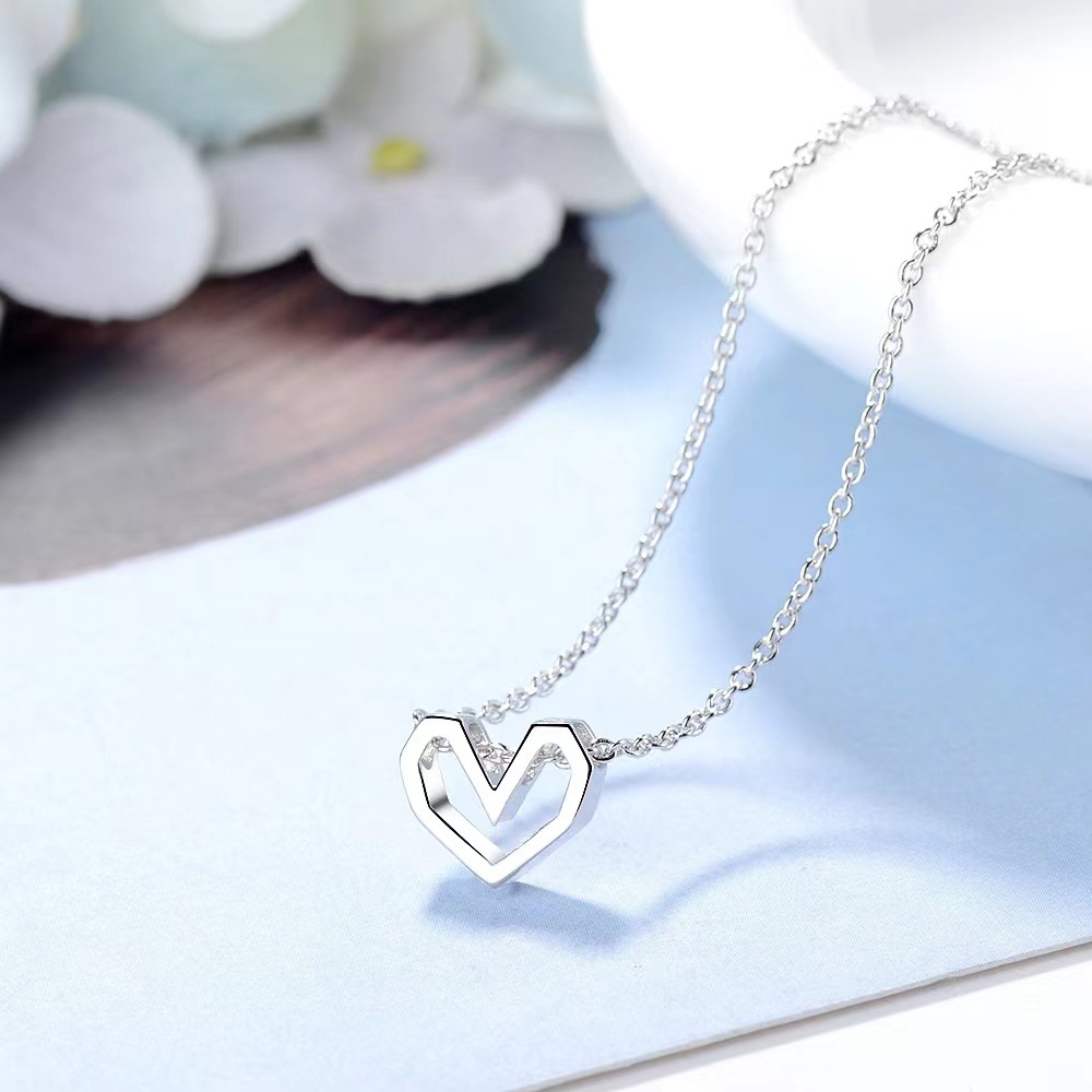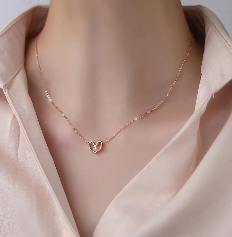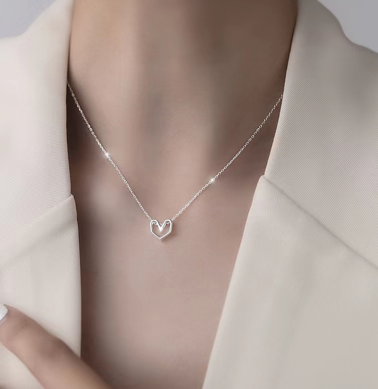 S925纯银小清新镂空爱心项链女 轻奢高级感简约心形吊坠短款颈链
