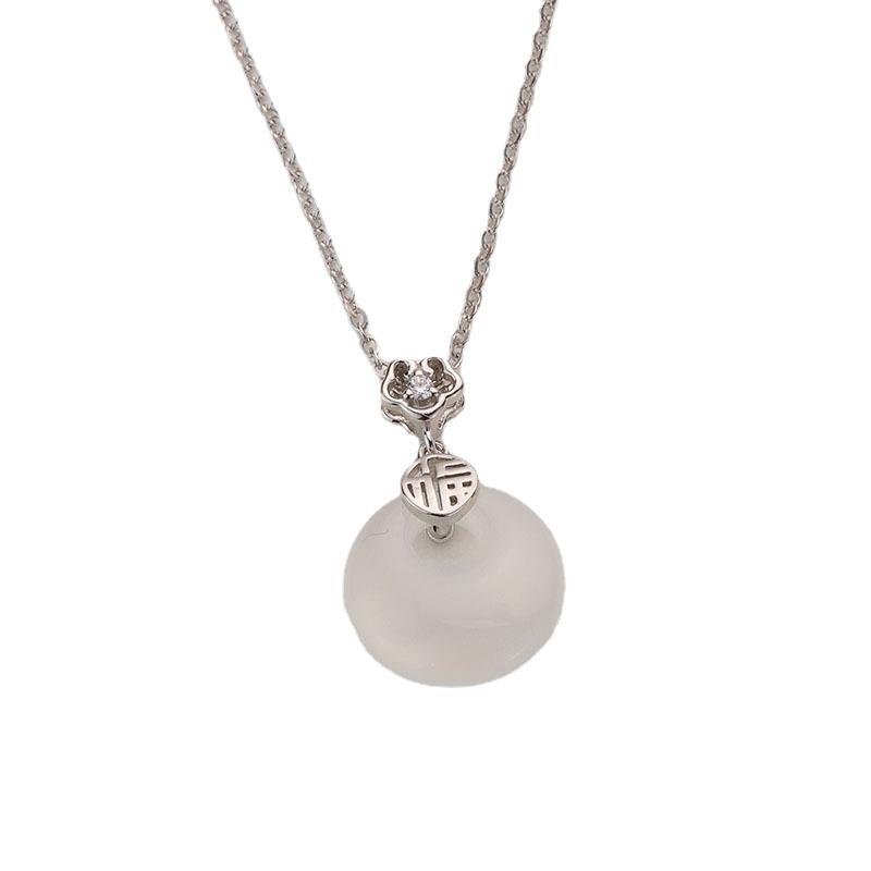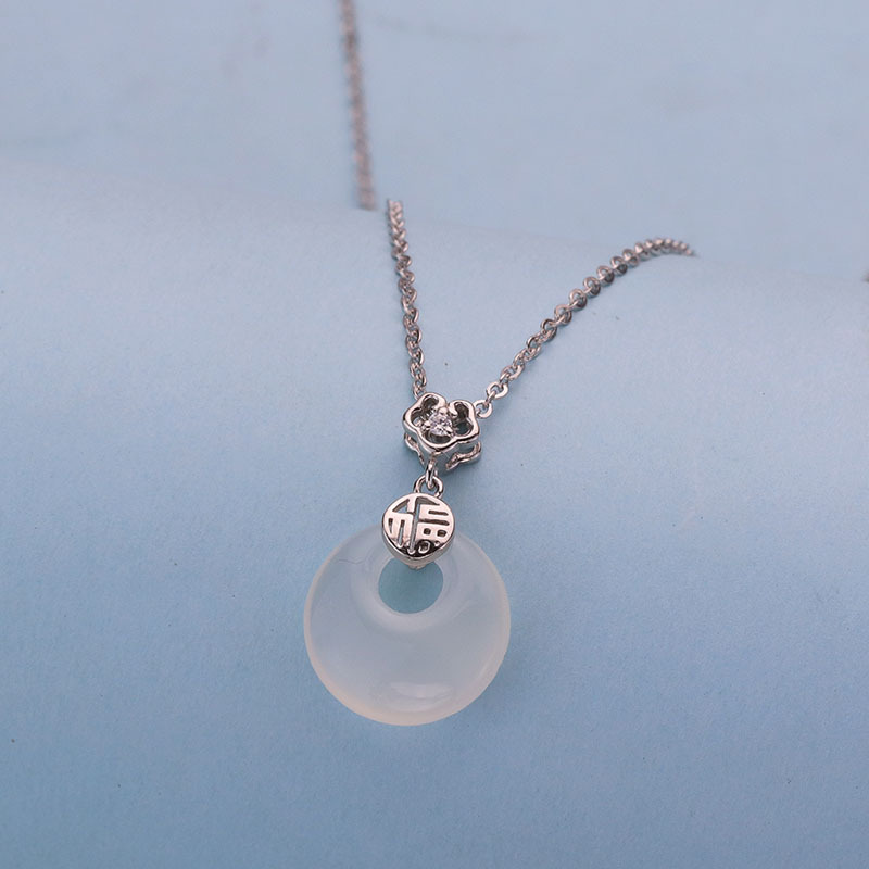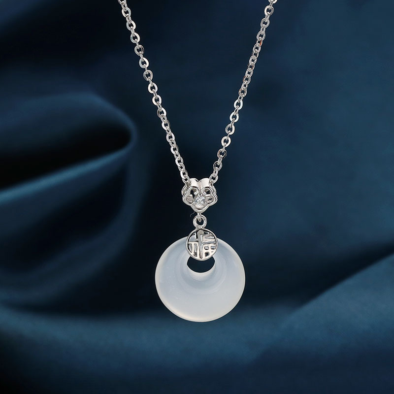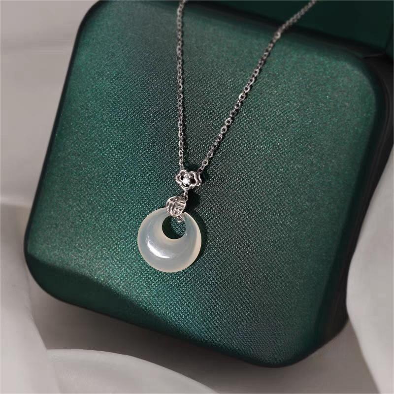 s999纯银福气平安扣玉髓项链女民族风宫廷锁骨链轻奢小众设计项链