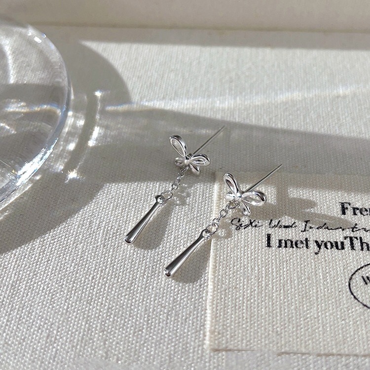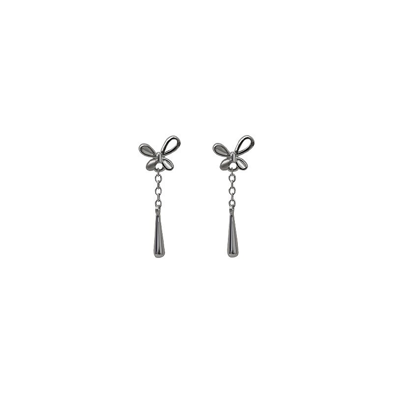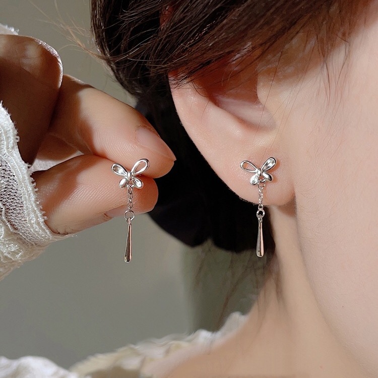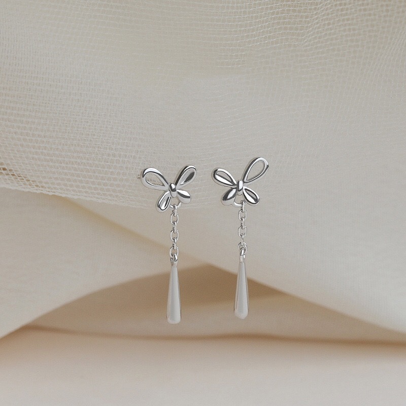 S925纯银韩版蝴蝶水滴流苏耳钉女甜美小清新森系女款显脸瘦耳环