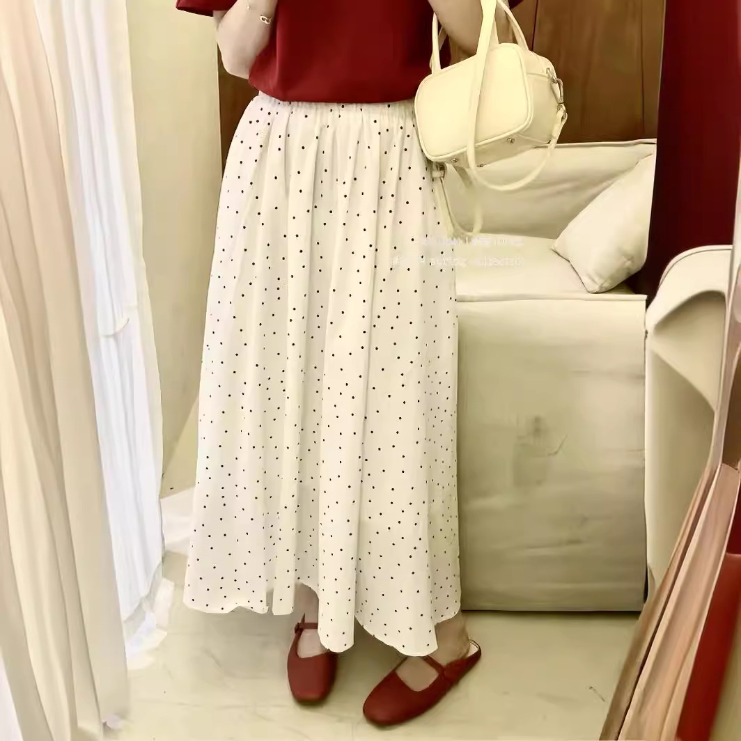 波点松紧高腰半身裙女清新文艺复古温柔风中长款休闲A字裙