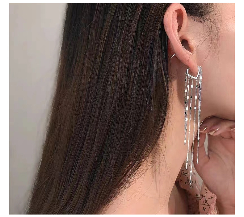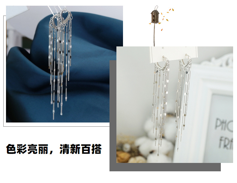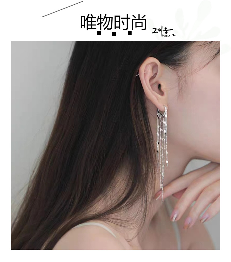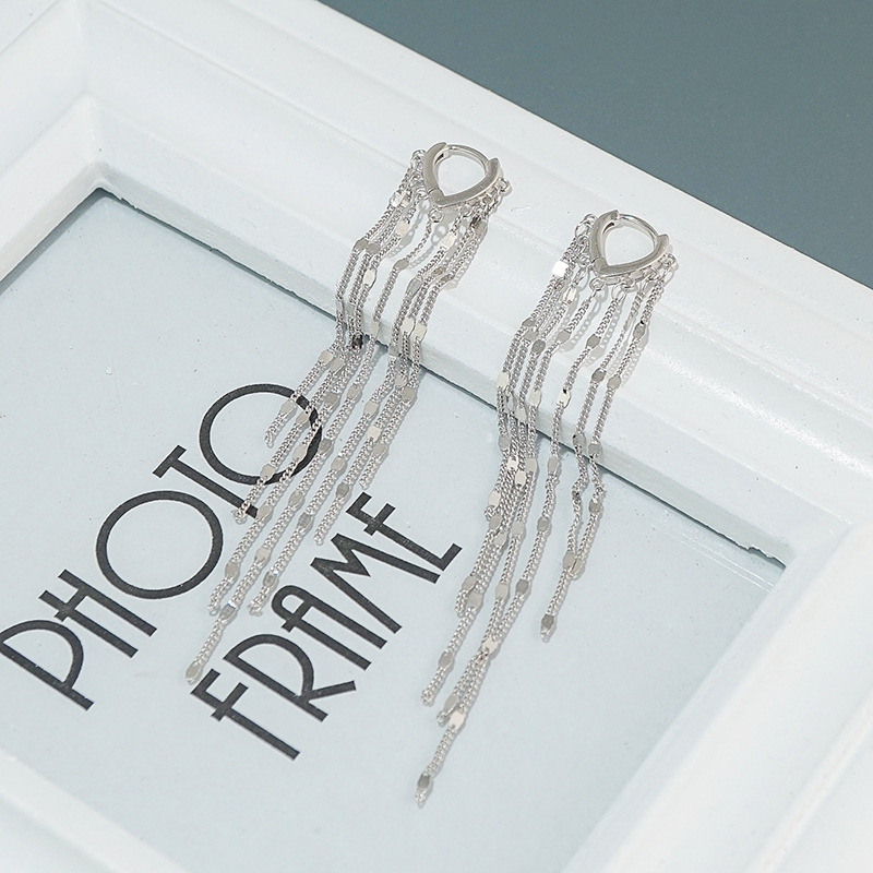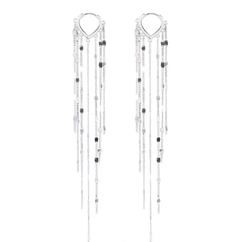s925纯银简约爱心耳扣耳饰轻奢时尚高级感长款流苏耳线冷淡风耳环