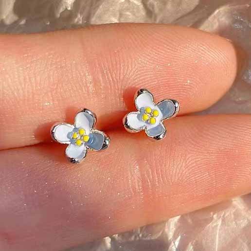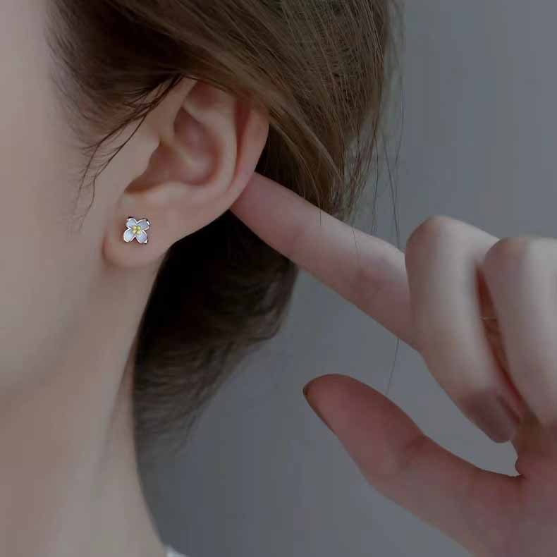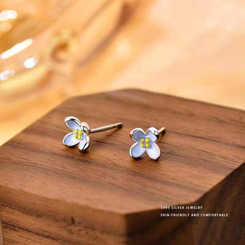 s999纯银丁香花耳钉女小香风甜美滴釉小花耳骨钉精致高级新款耳饰