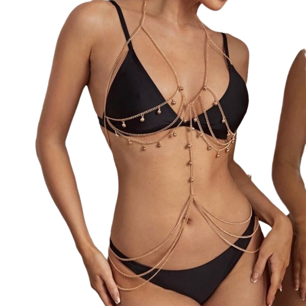 欧美时尚铃铛吊坠胸链 性感多层沙滩比基尼链 情趣身体链配饰女款