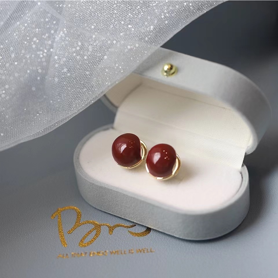 「红朗姆酒」酒红气质蚊香盘耳夹无耳洞女耳环复古球球赫本风耳饰