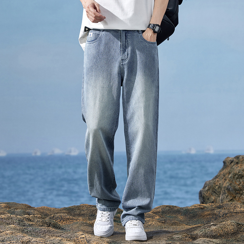 美式复古星空纹牛仔裤男士春夏款新品直筒阔腿休闲长裤子