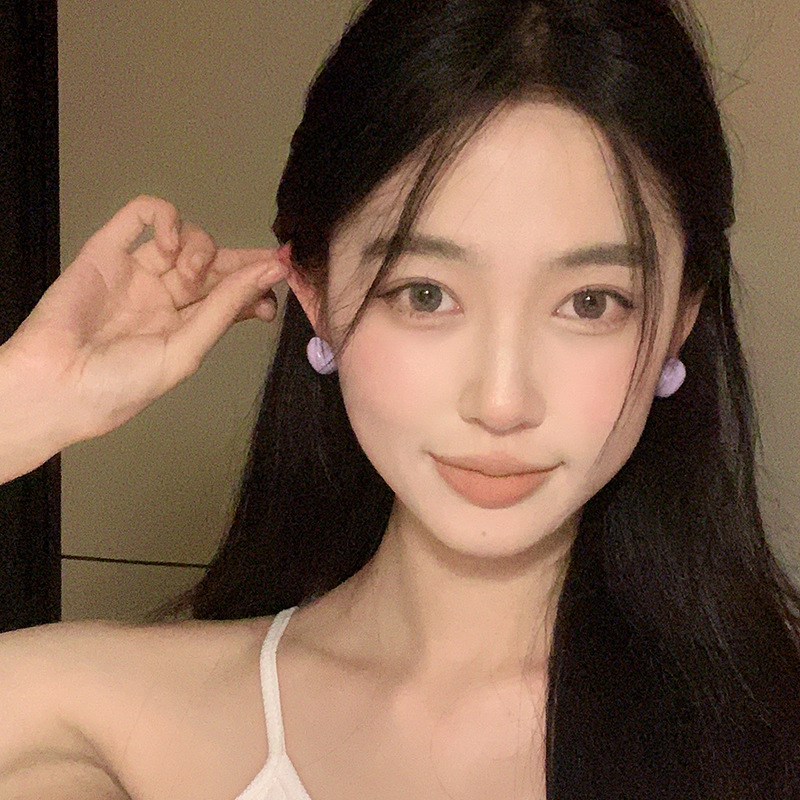 糖果色爱心耳环女甜美气质小众设计感耳钉夏天小清新百搭心形耳饰
