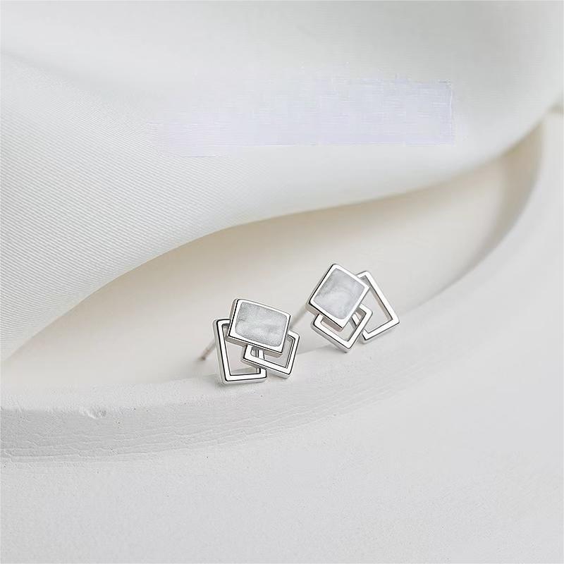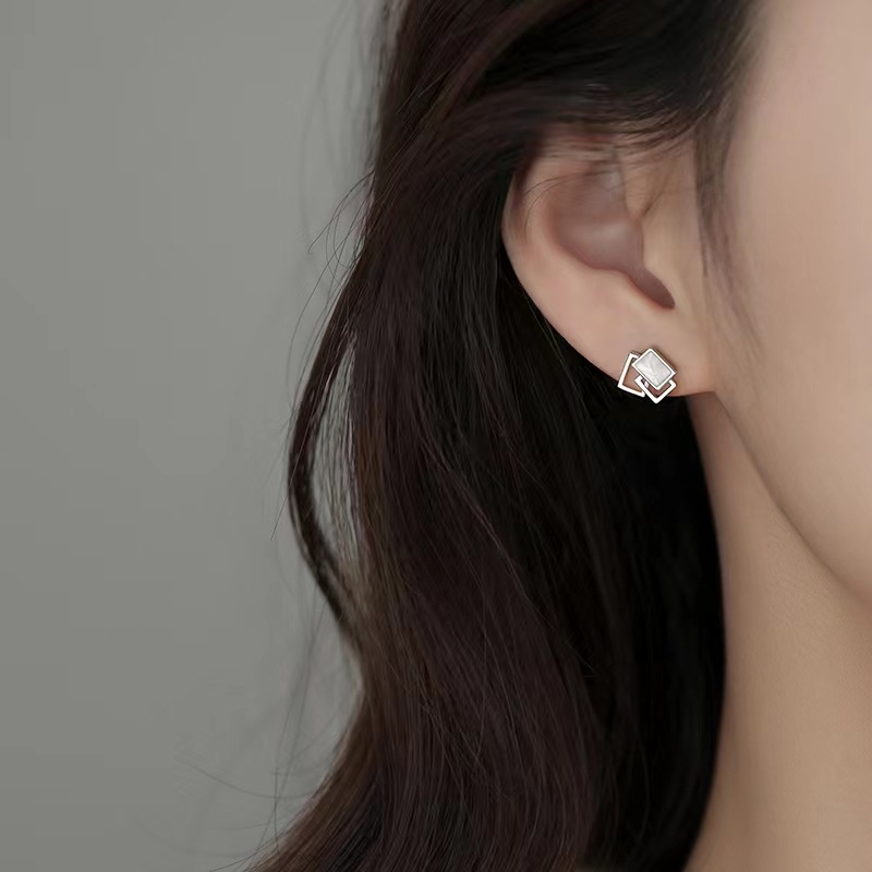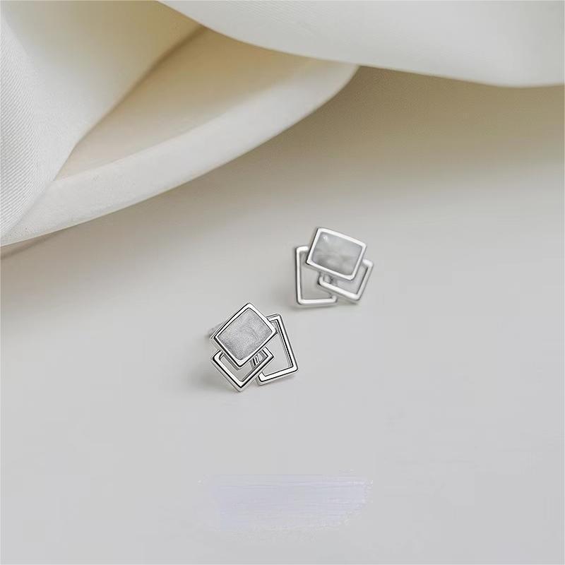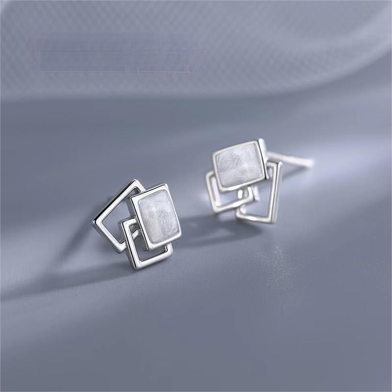 s999纯银几何方块耳钉轻奢时尚高级感冷淡风耳钉滴胶耳钉耳环耳饰