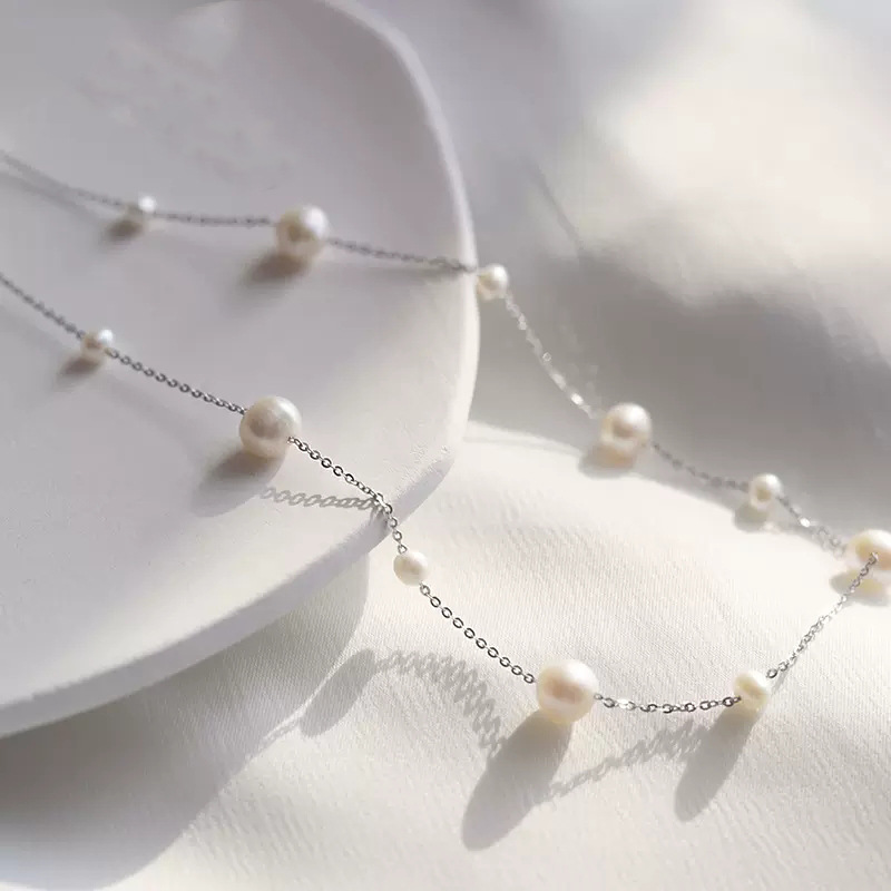 S925纯银一款多戴珍珠项链日韩仙女气质锁骨链轻奢小众网红毛衣链