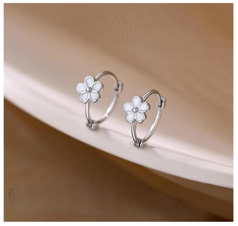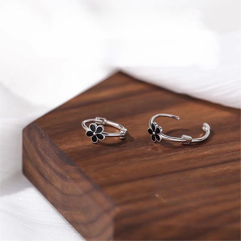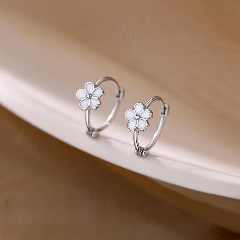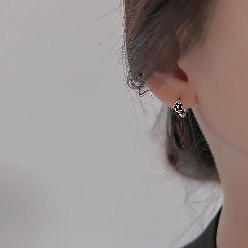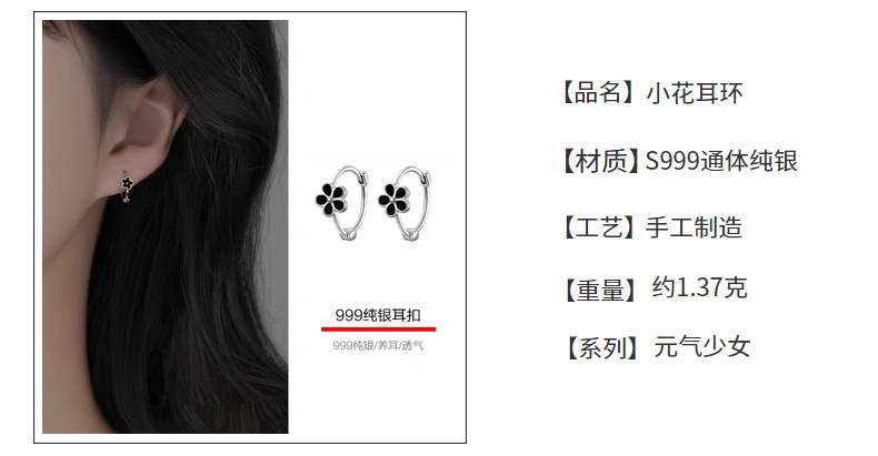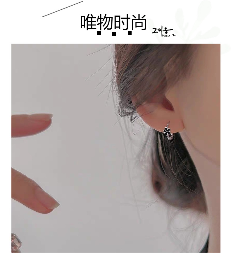 S999足银小花耳扣女小众设计高级感 耳环圈新款潮养耳饰品