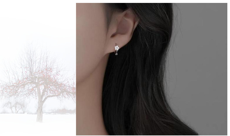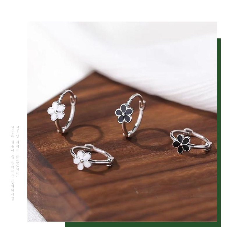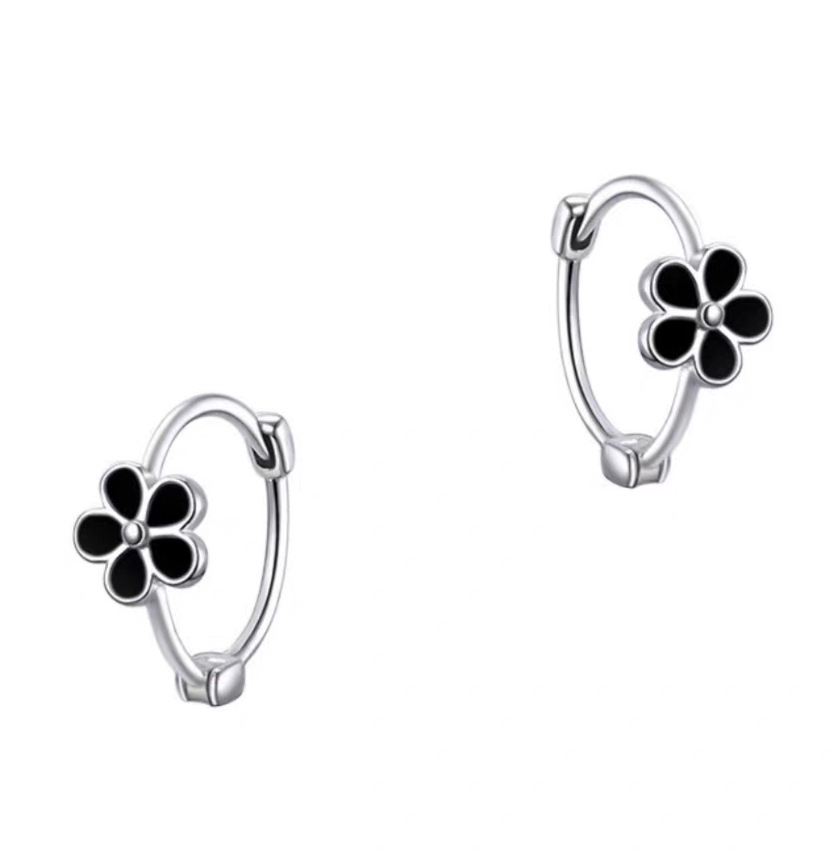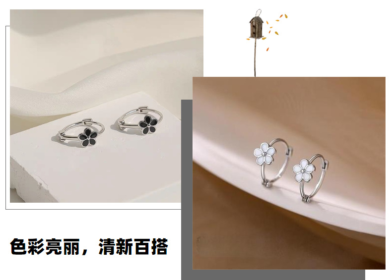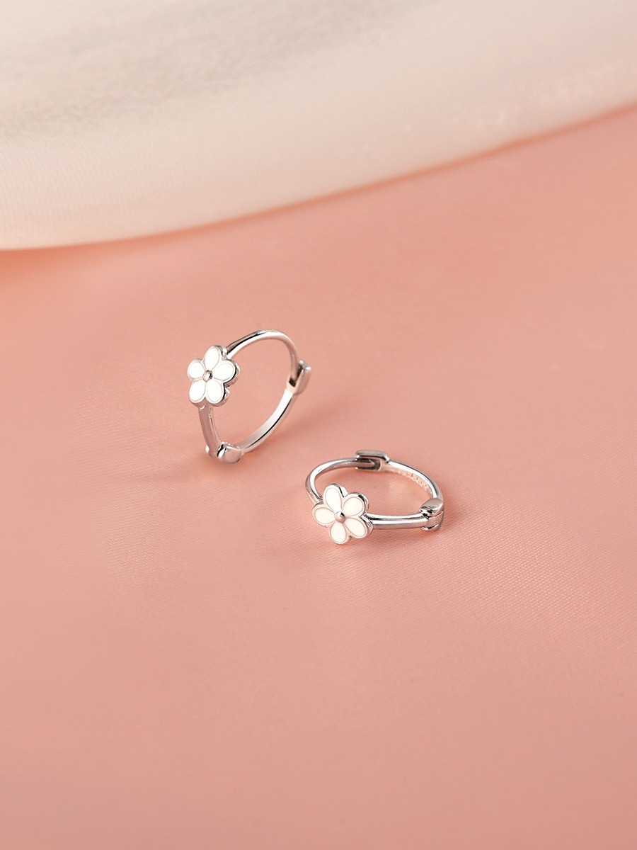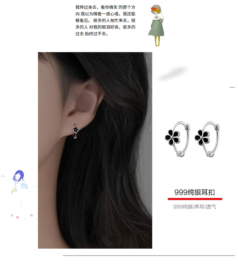 S999足银小花耳扣女小众设计高级感 耳环圈新款潮养耳饰品