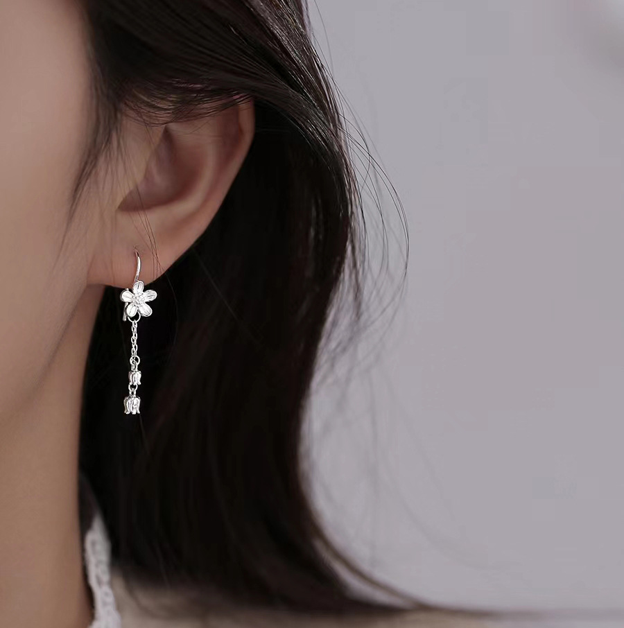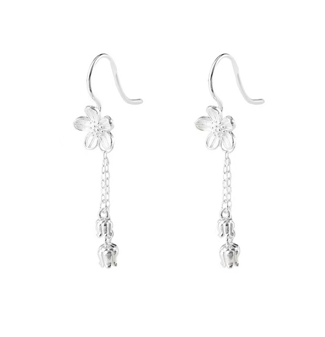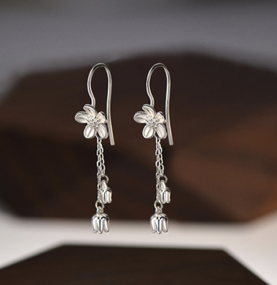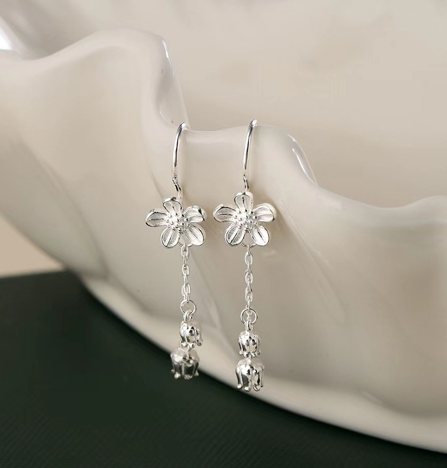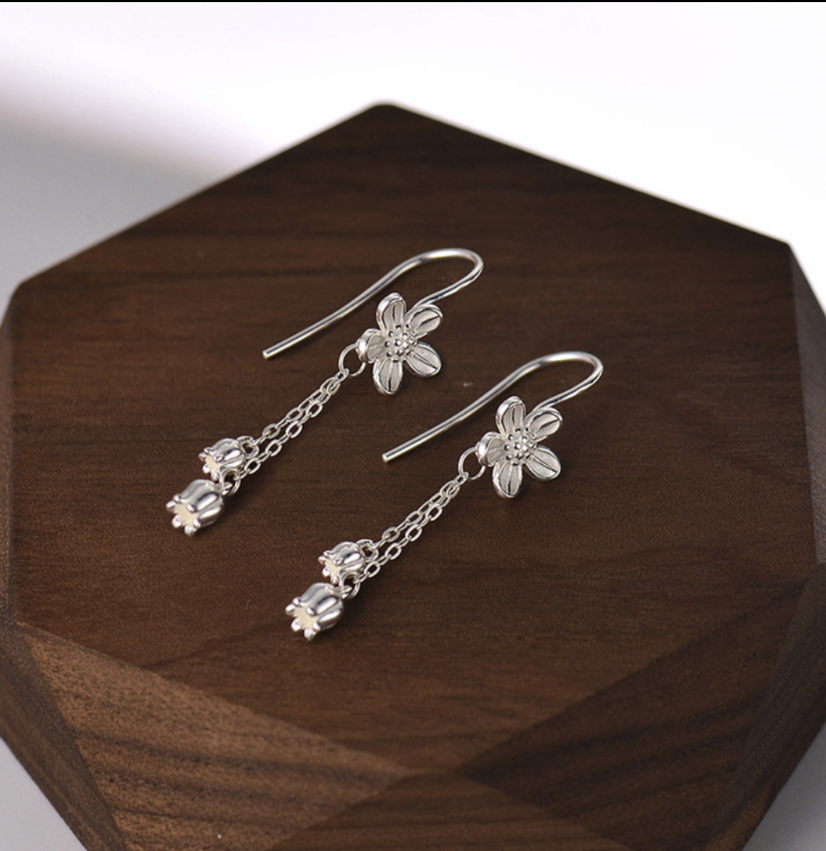 中国风系S999银莲花耳钉女时尚百搭耳坠流苏耳勾优雅女士耳饰品