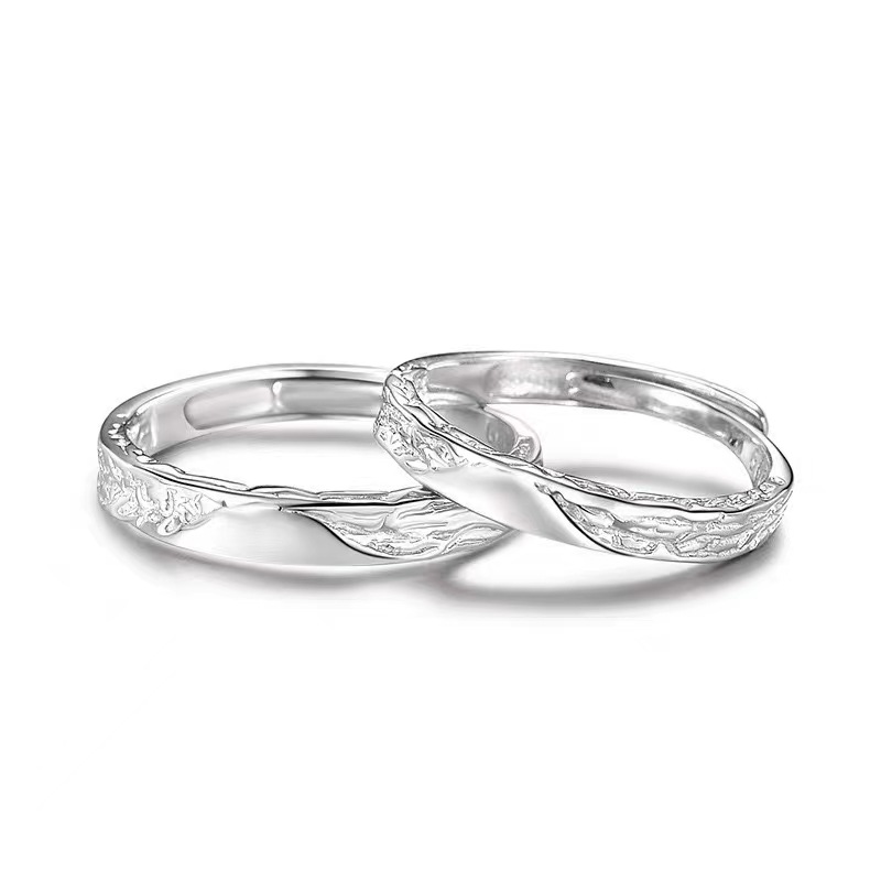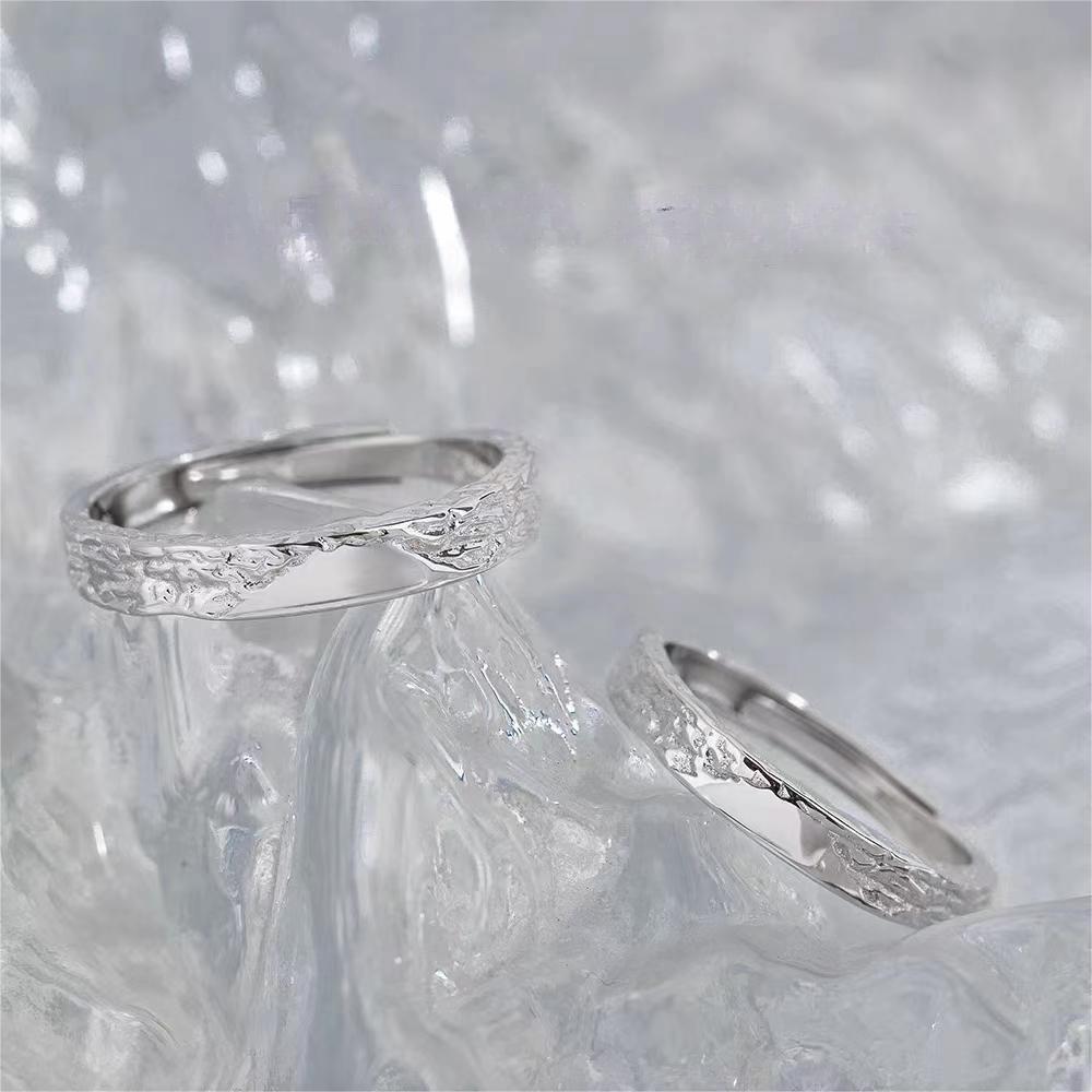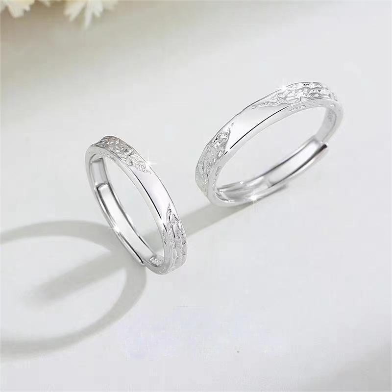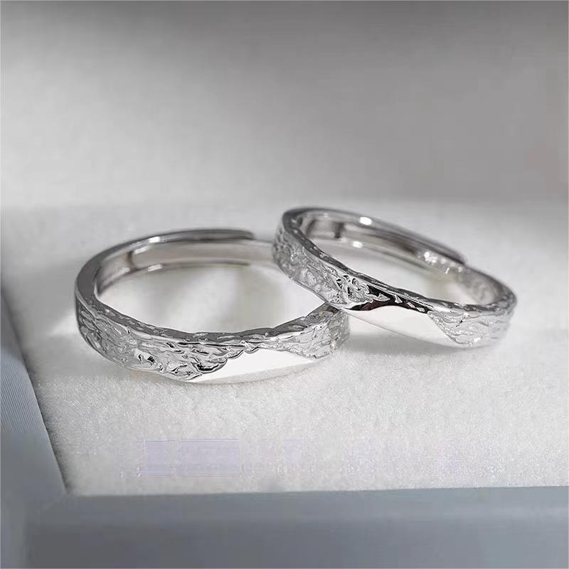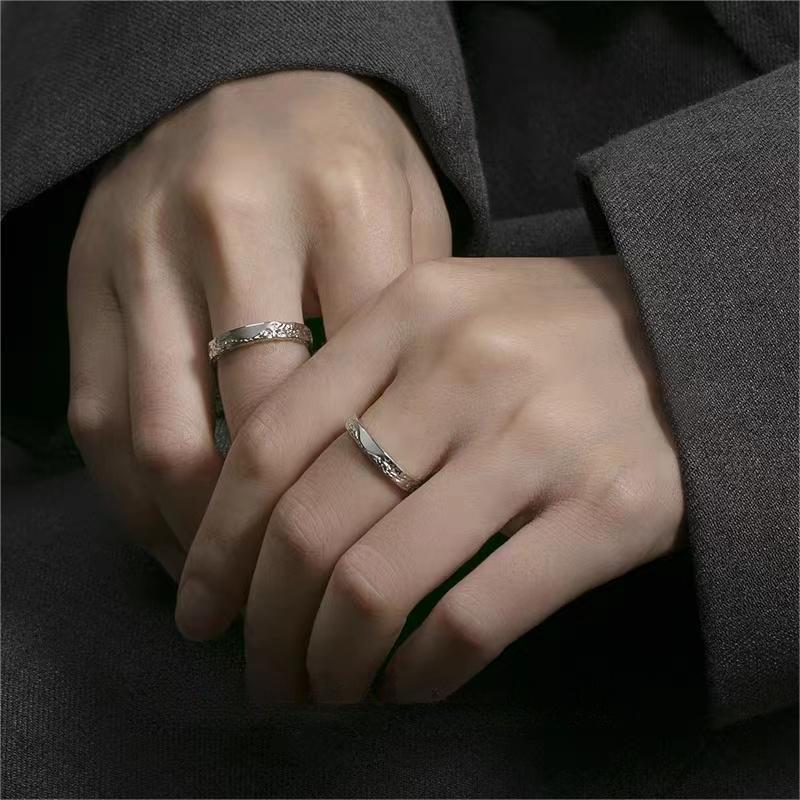 纯银999如初情侣开口戒指一对韩版轻奢高级ins对戒素圈七夕礼物