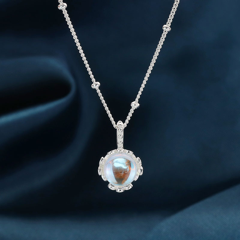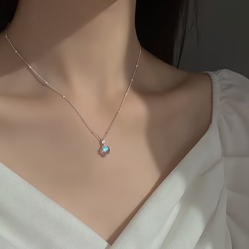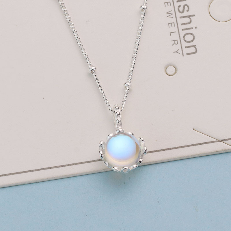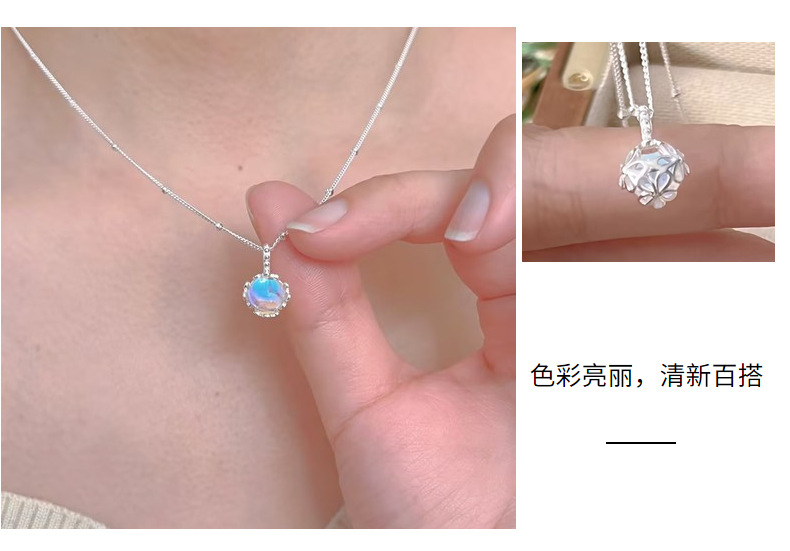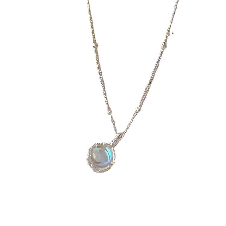 S925纯银月光石圆形项链女韩版轻奢高级感圆珠侧身链吊坠ins风