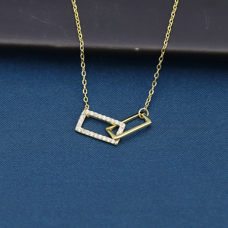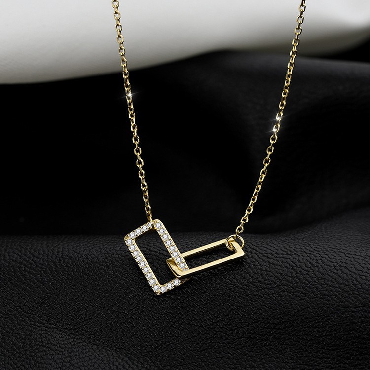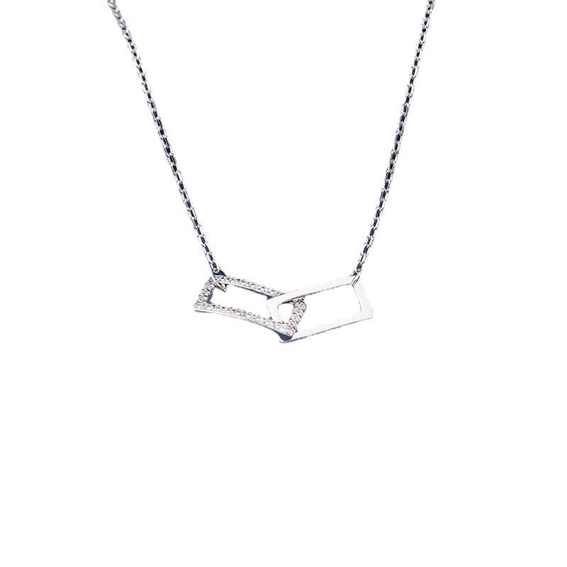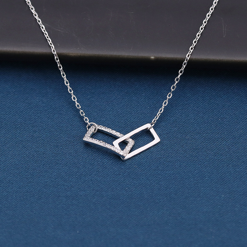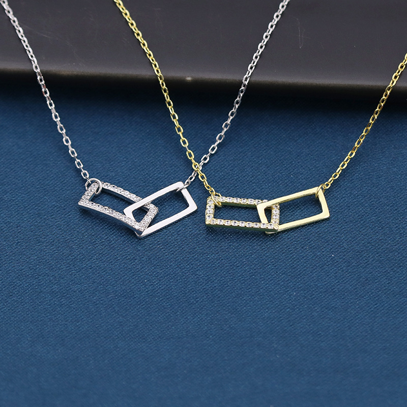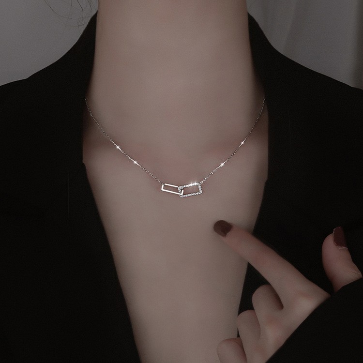 S925纯银轻奢方形双环相扣项链女小众设计百搭锁骨链ins几何吊坠