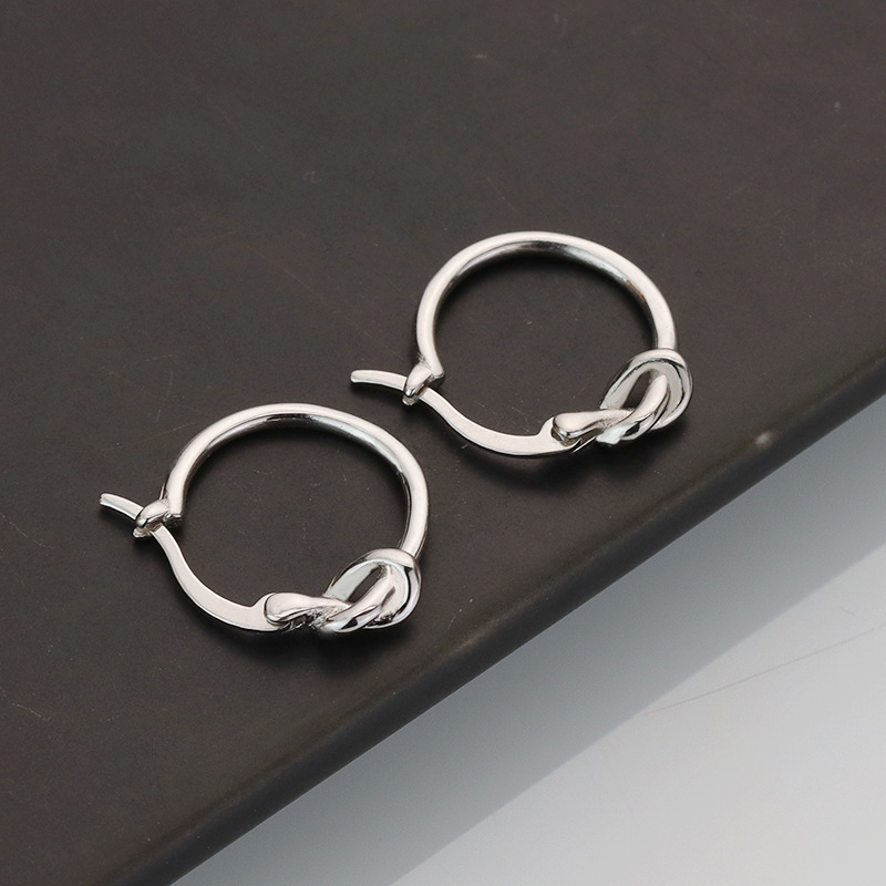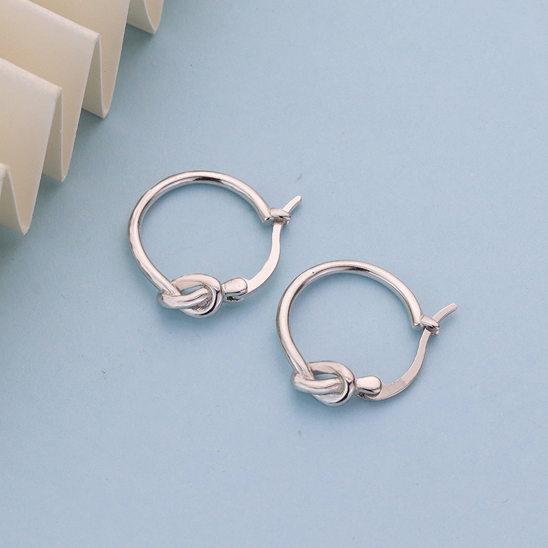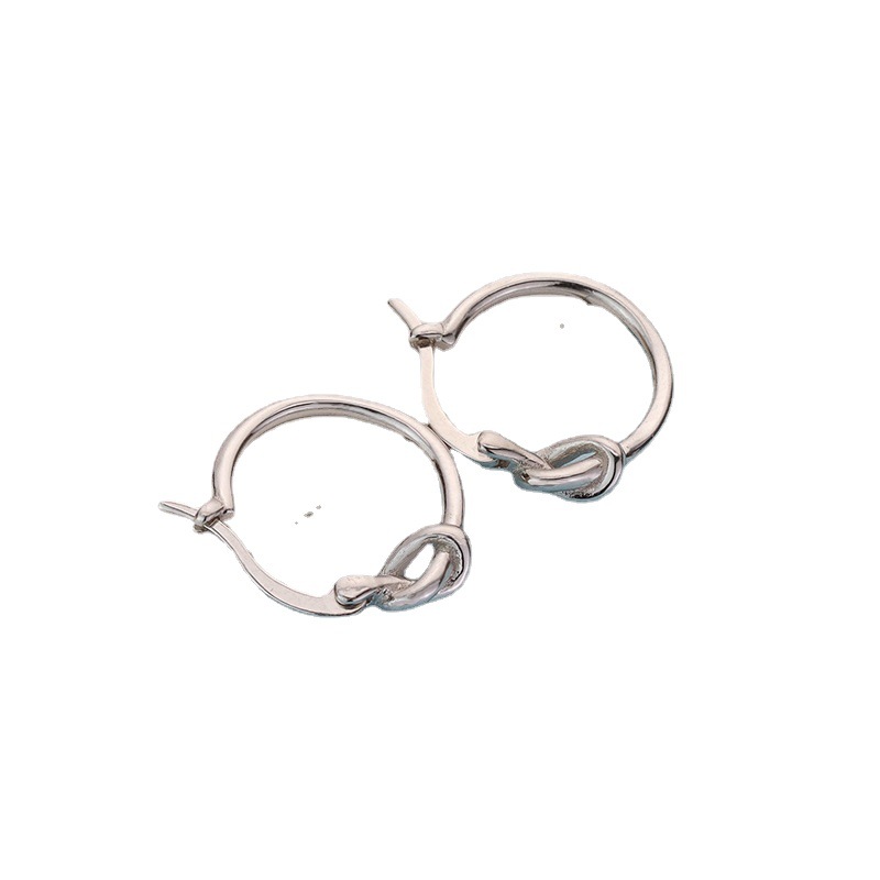 S999纯银冷淡风法式手工打结耳环女 韩版同心结耳勾个性百搭耳钉