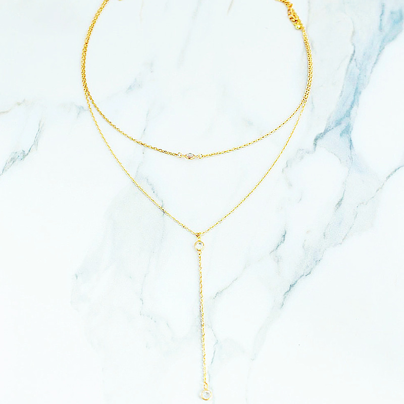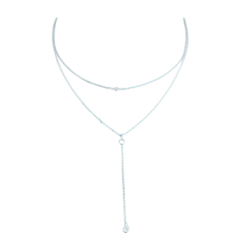 欧美外贸饰品简约性感百搭水钻多层项链 双层颈链女