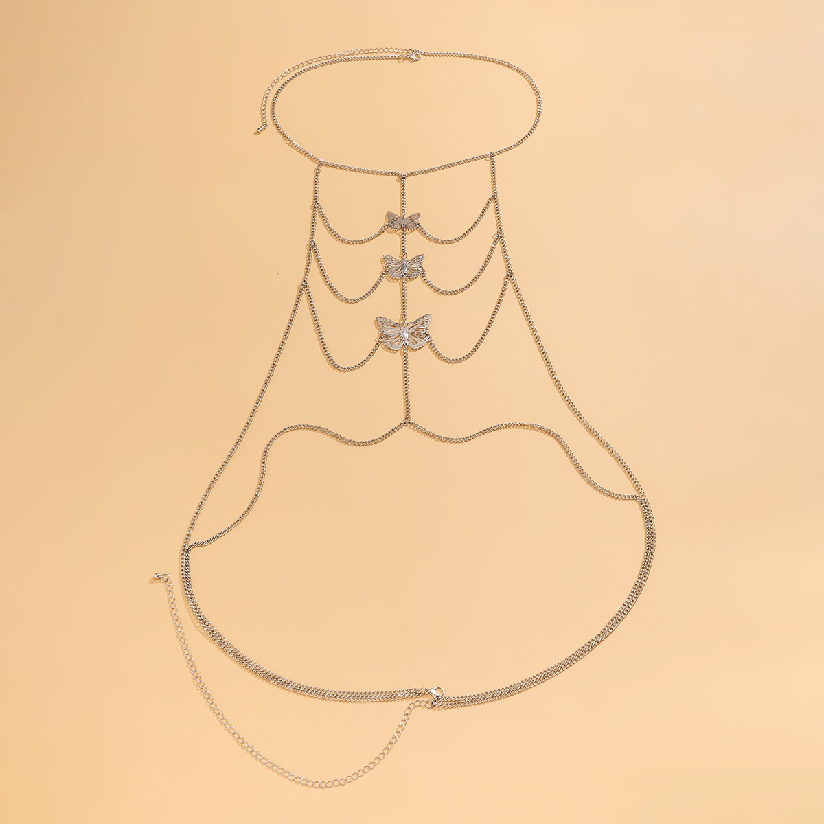 欧美跨境饰品性感多层流苏链条简约蝴蝶胸链夏日沙滩链身体链