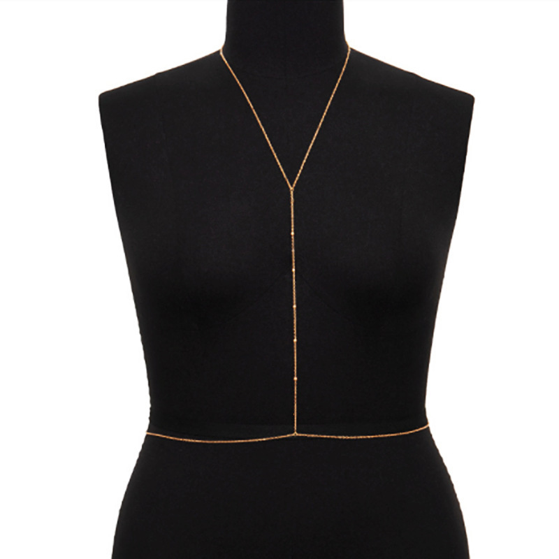 欧美跨境饰品 时尚性感项链一体链女 简约金属圆珠链条身体链腰链