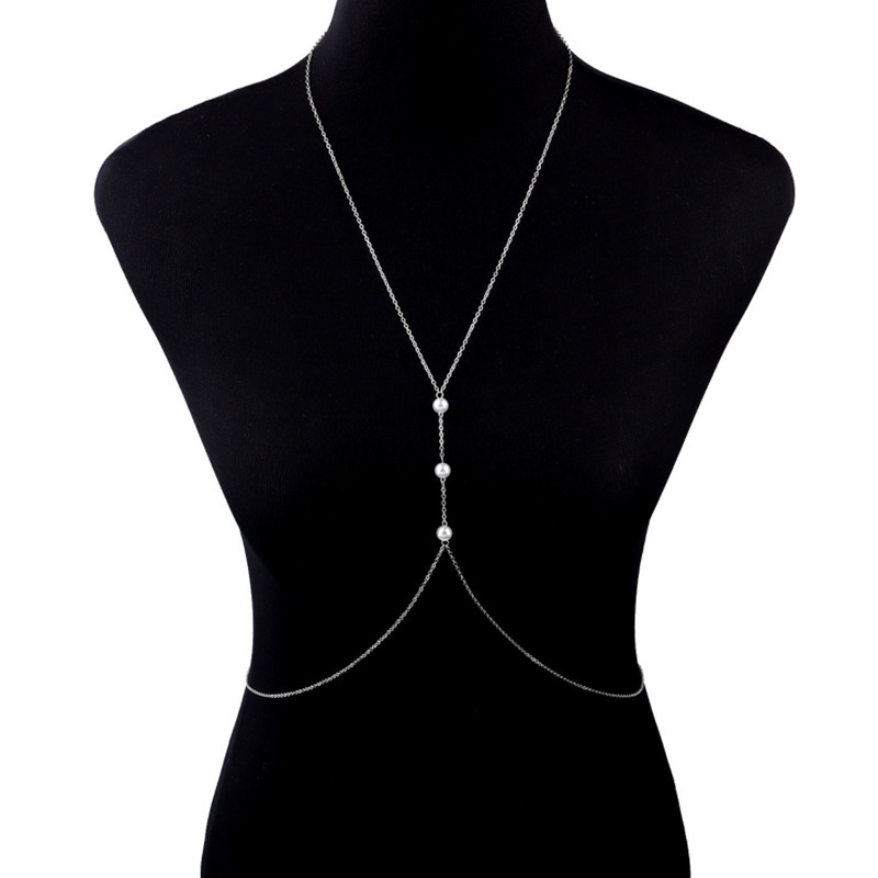 欧美新款女性性感胸链belly bodychain珠宝饰品 珍珠链条身体链