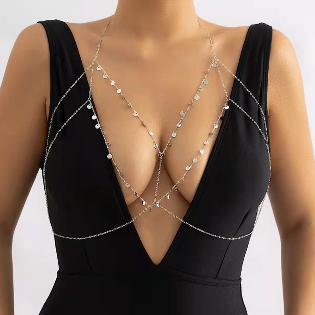 欧美跨境饰品简约流苏比基尼胸链 交叉夜店挂脖性感沙滩身体链女