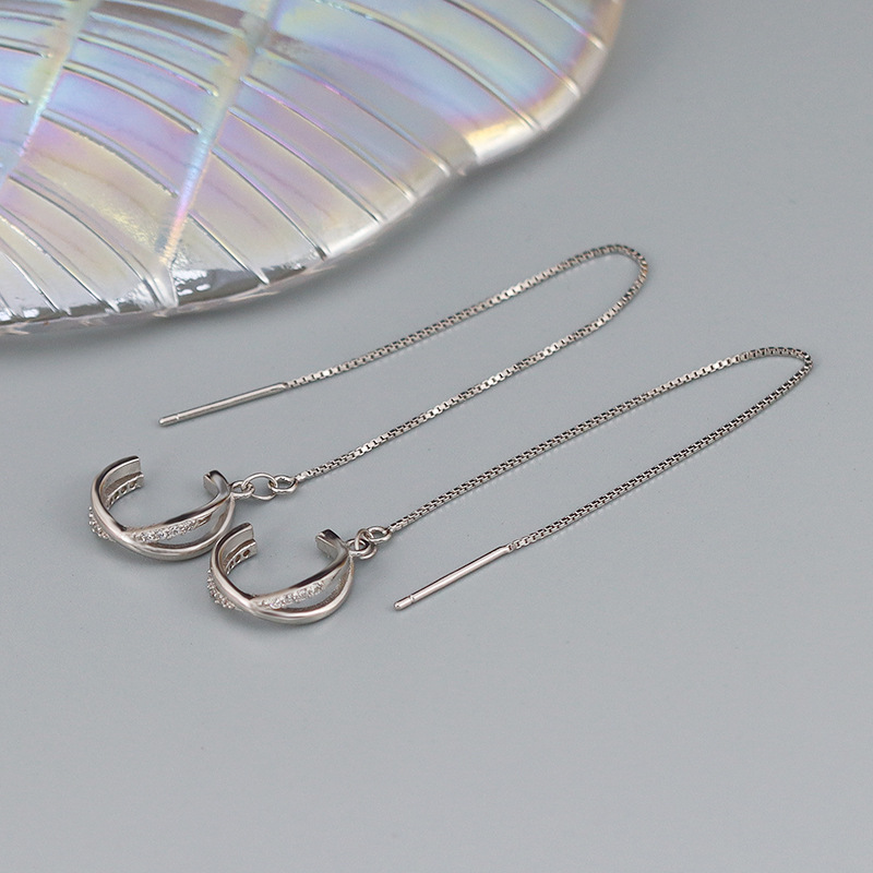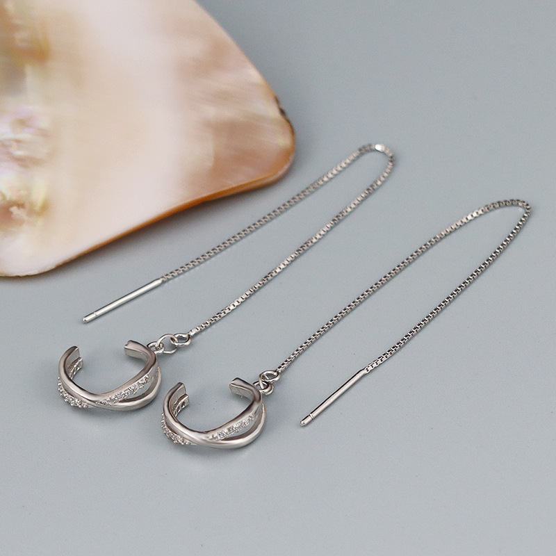 S925纯银耳线气质耳骨夹耳环女韩版INS小众设计轻奢耳饰