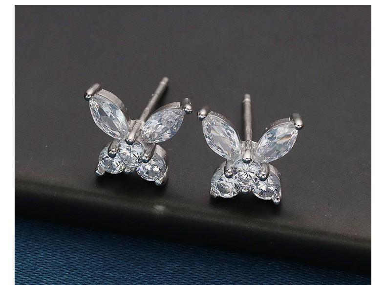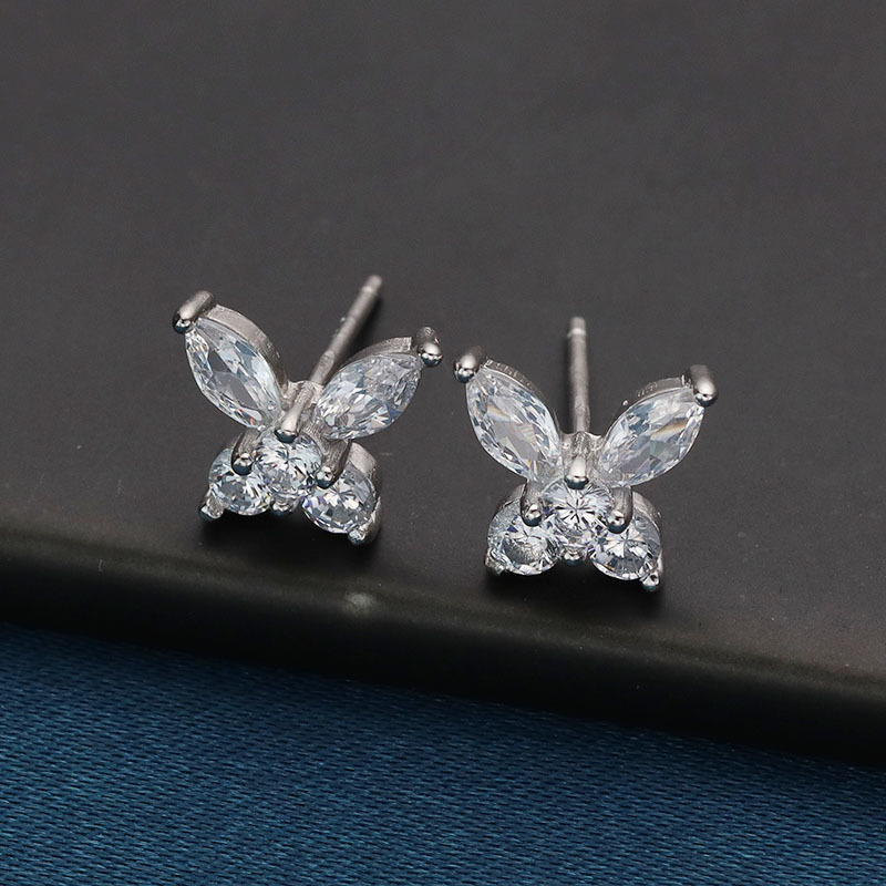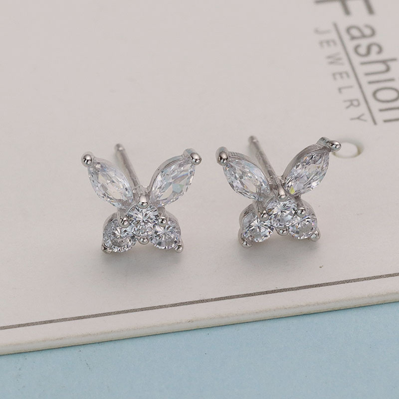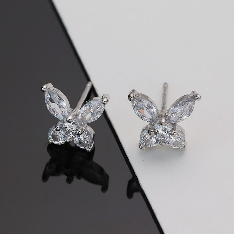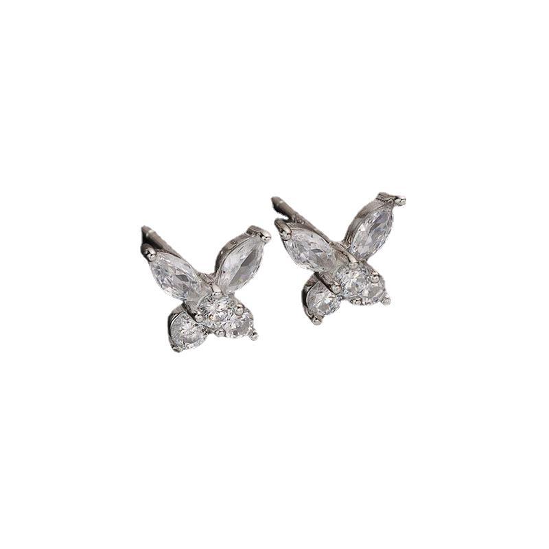 s925纯银森系蝴蝶锆石耳钉韩版轻奢气质镶钻养耳洞高级感ins耳饰